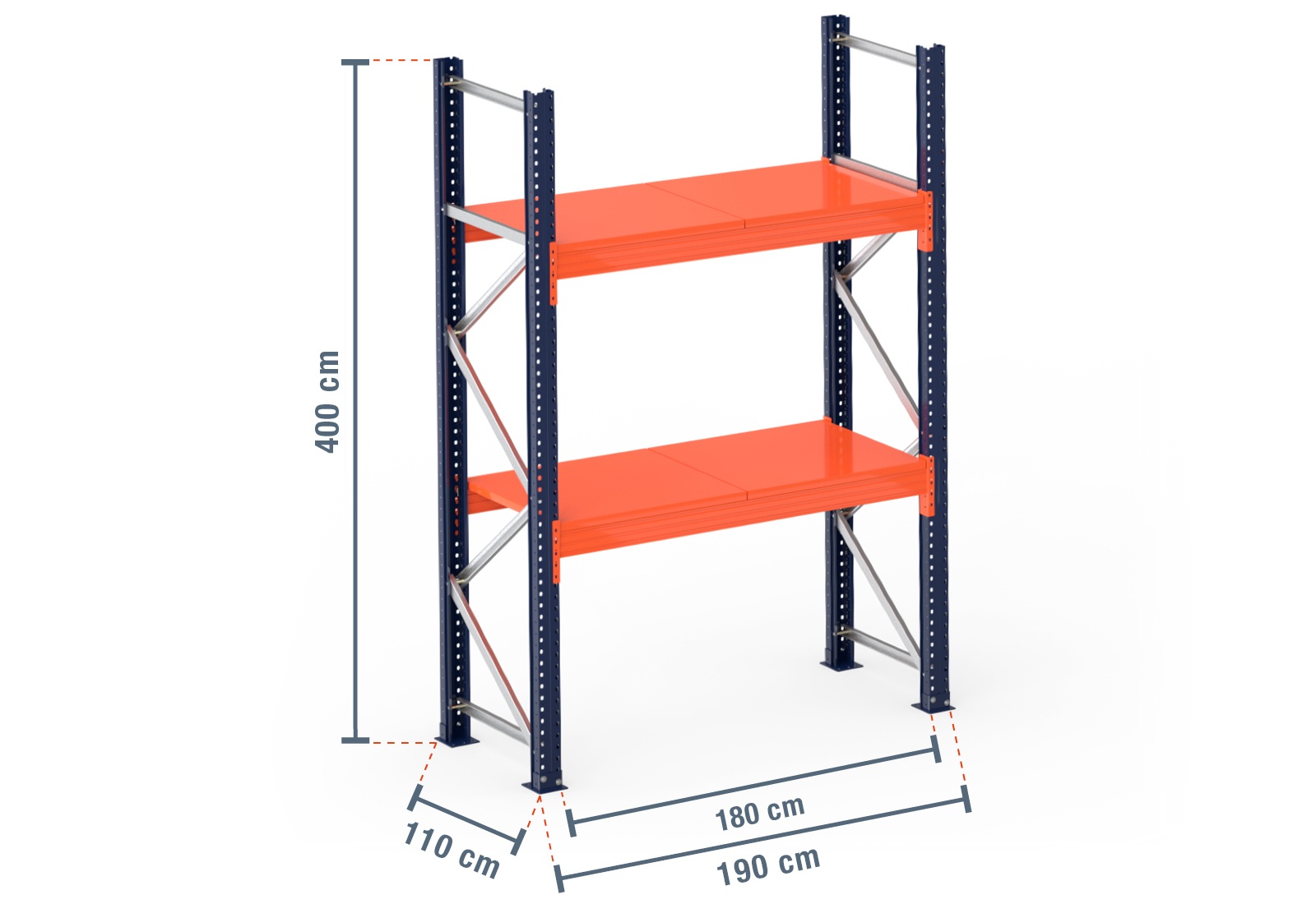 1,9 m pallet racking PR15000 / 110 cm deep / 4 m high / 2 levels / rack layer Steel