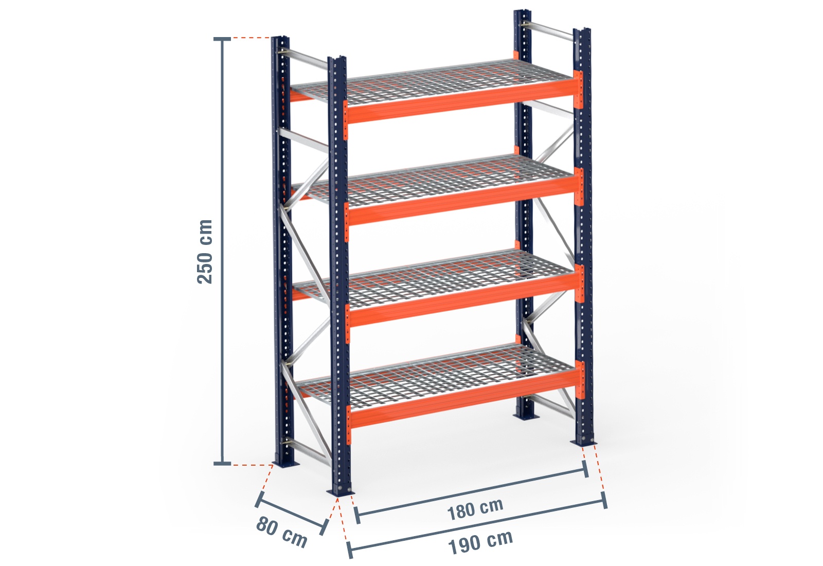 1,9 m pallet racking PR15000 / 80 cm deep / 2,5 m high / 4 levels / rack layer Galvanised mesh