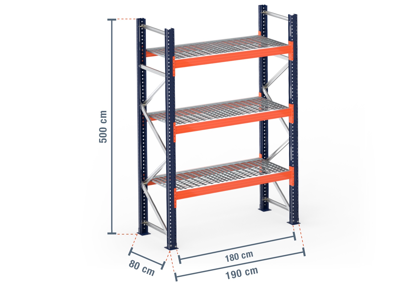 1,9 m pallet racking PR15000 / 80 cm deep / 5 m high / 3 levels / rack layer Galvanised mesh