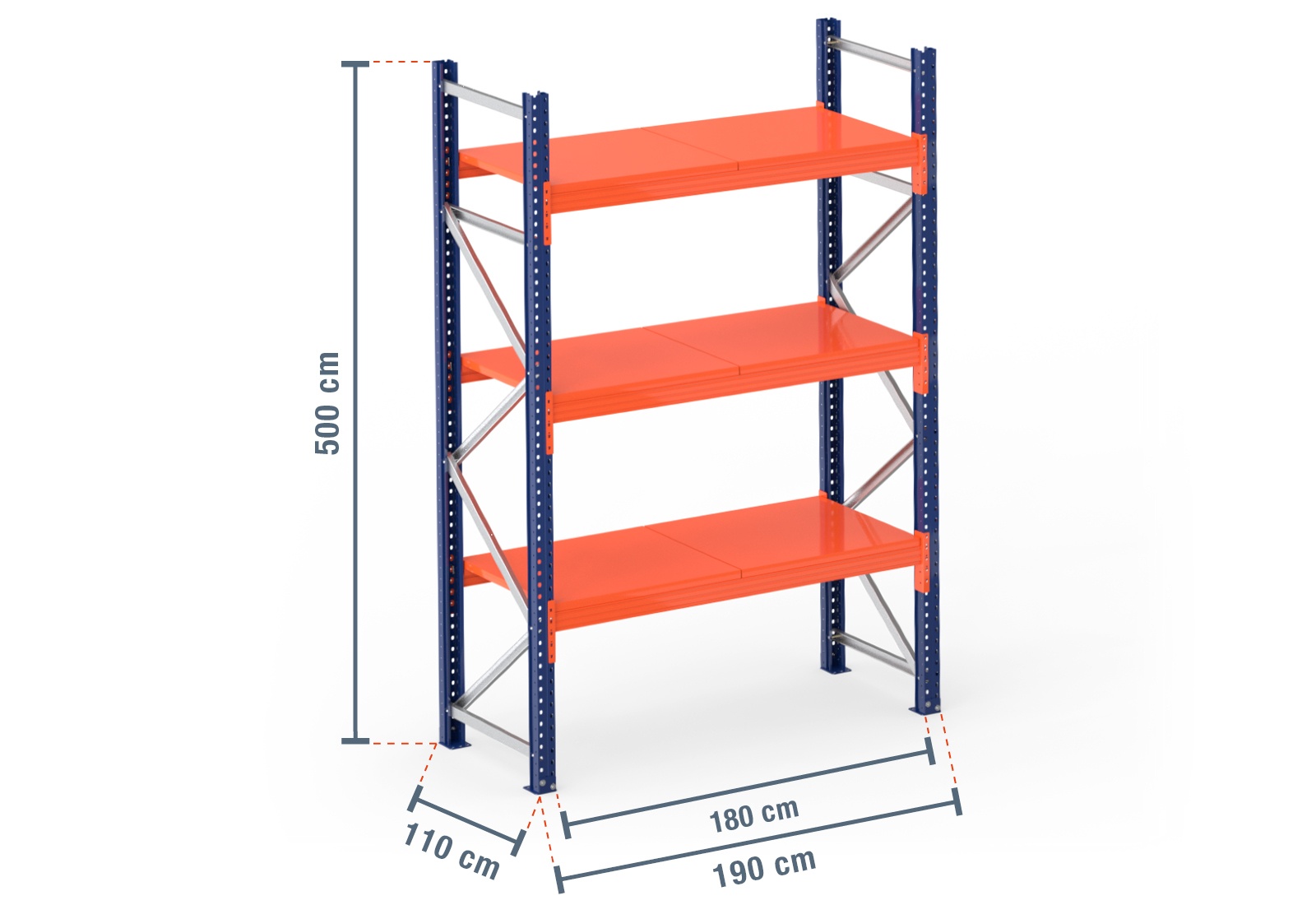The steel shelf support is extremely durable and robust when compared with wooden boards or mesh shelves. These shelf supports have a long service life and are particularly suitable for the storage of liquids such as paint, oil or fuel. The steel shelf offers a maximum load capacity of 1.000 kg per module with an even weight distribution. It is also painted in the bright signal colour of orange. This ensures safety as the shelves can be easily seen from a distance. Its special design enables the steel shelf to be secured to the beams themselves, so it simply needs to be placed in position. When loading your pallet rack, please observe the maximum shelf and unit loads specified.