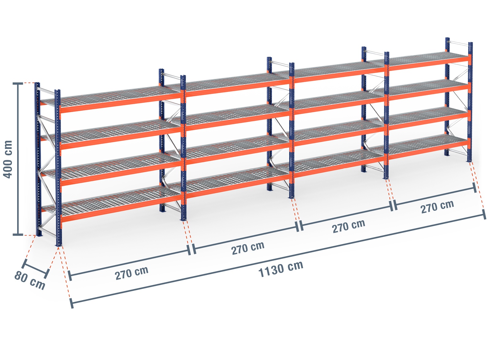- 16 x mesh shelf PR4500 270 cm wide / 80 cm deep (comprising 48 modules)