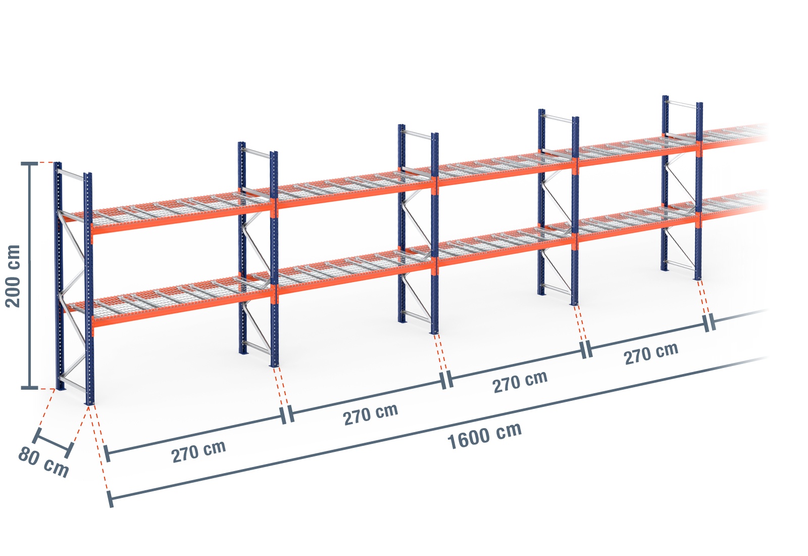 16 m pallet racking PR4500 / 80 cm deep / 2 m high / 2 levels / rack layer Wire mesh