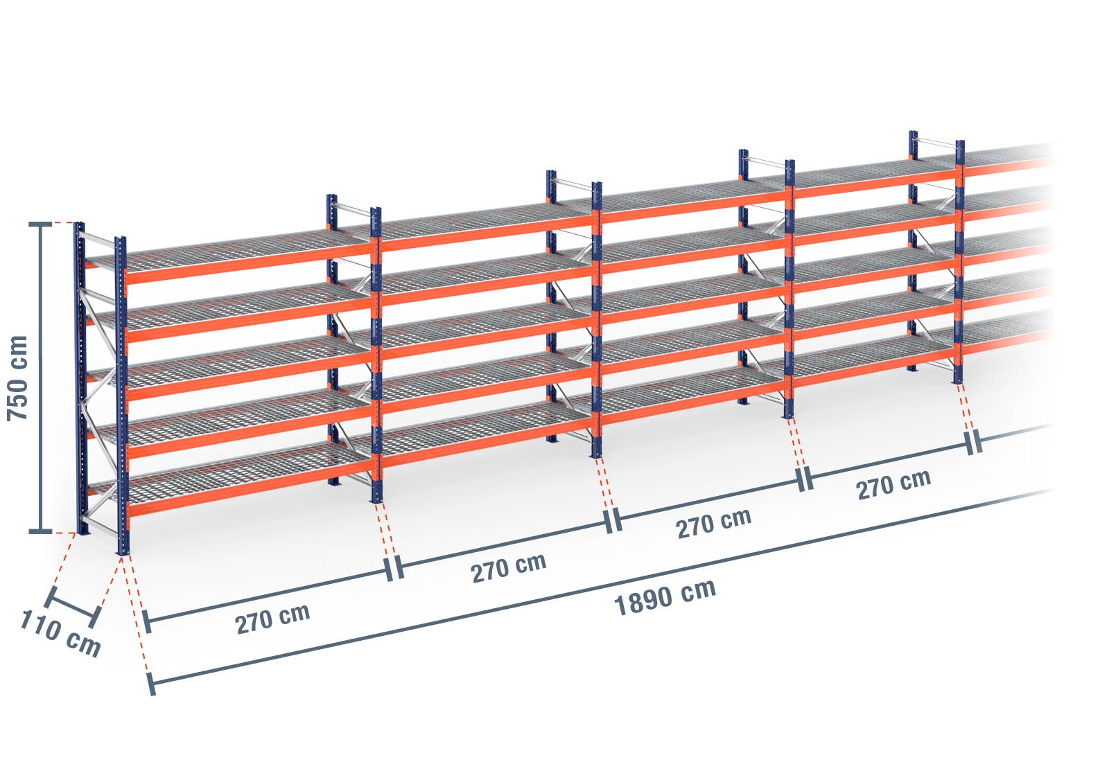 - 5 x mesh shelf PR4500 180 cm wide / 110 cm deep (comprising 10 modules)