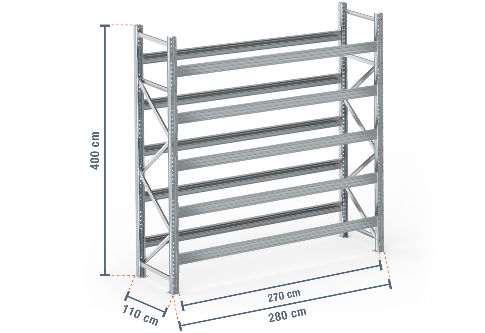 Safety & protection equipment and useful accessories for this type of rack, such as collision protection, galvanised mesh shelves or push-through protection, can be found in our webshop.
