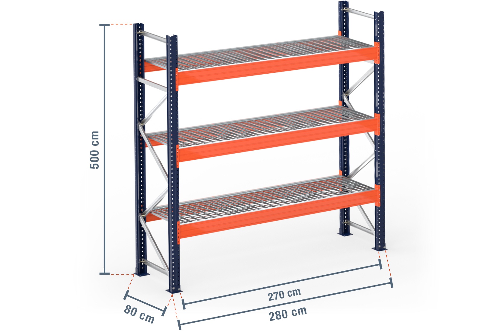 2,8 m pallet racking PR15000 / 80 cm deep / 5 m high / 3 levels / rack layer Galvanised mesh