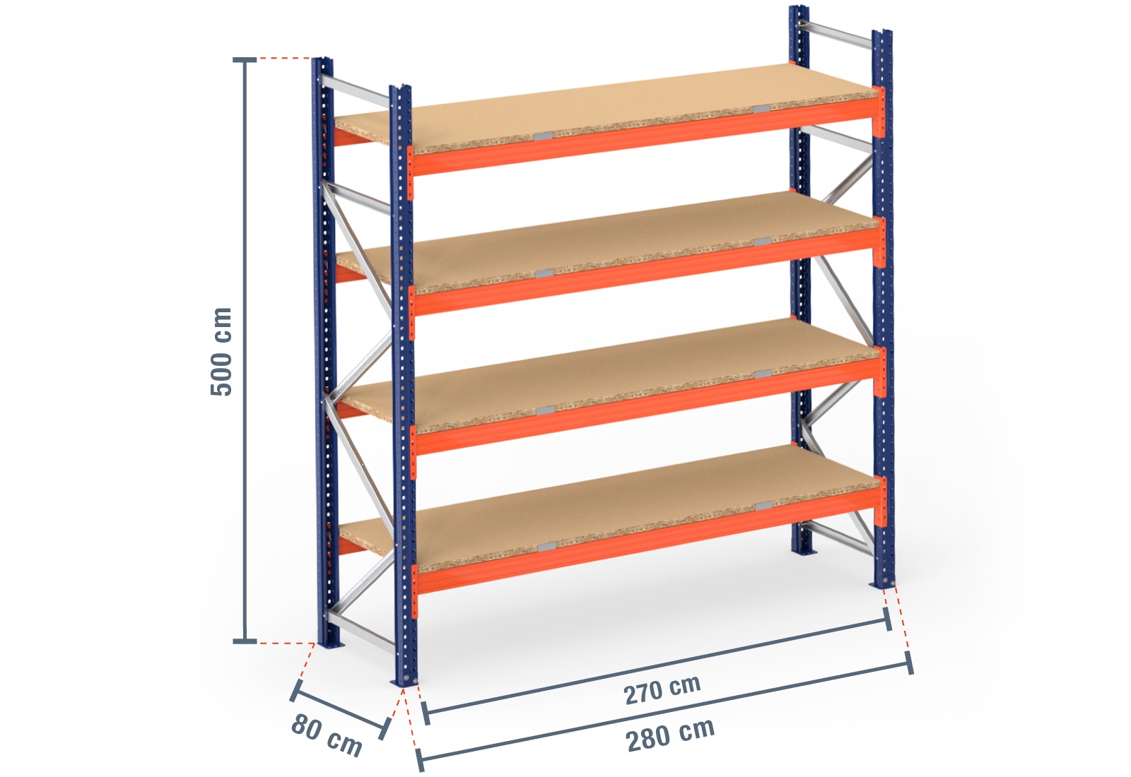 2,8 m pallet racking PR4500 / 80 cm deep / 5 m high / 4 levels / rack layer Wood