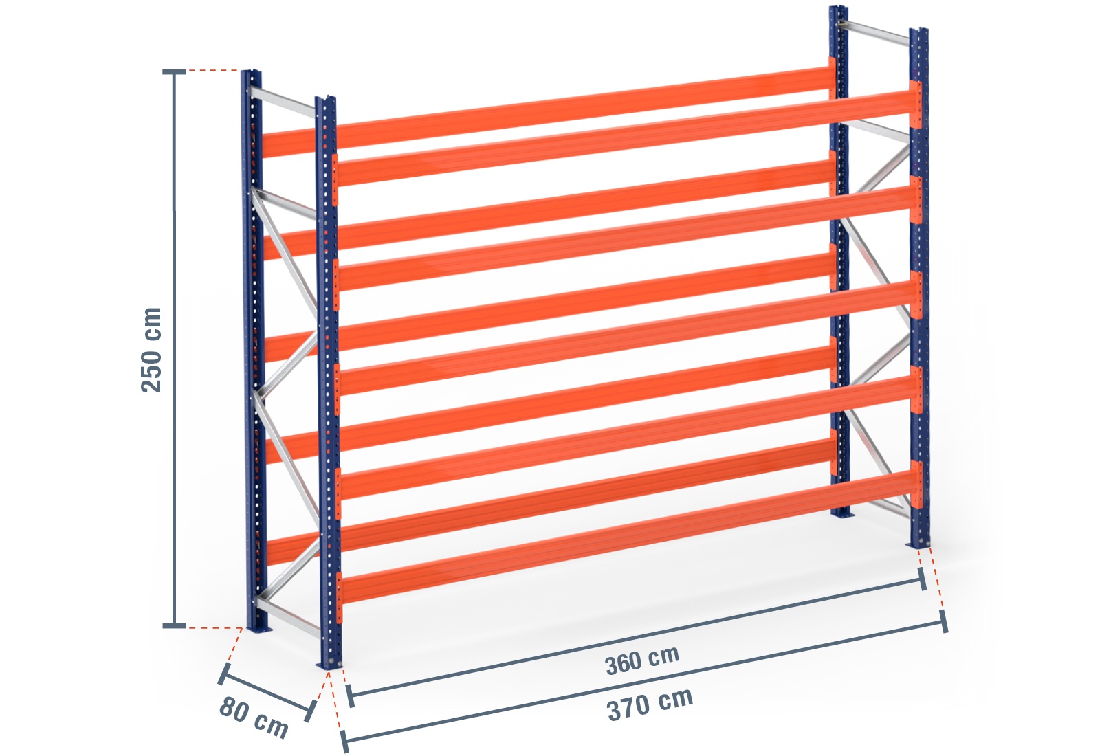 3,7 m pallet rack PR4500 / 80 cm deep / 2,5 m high / 5 levels for 24 euro pallets