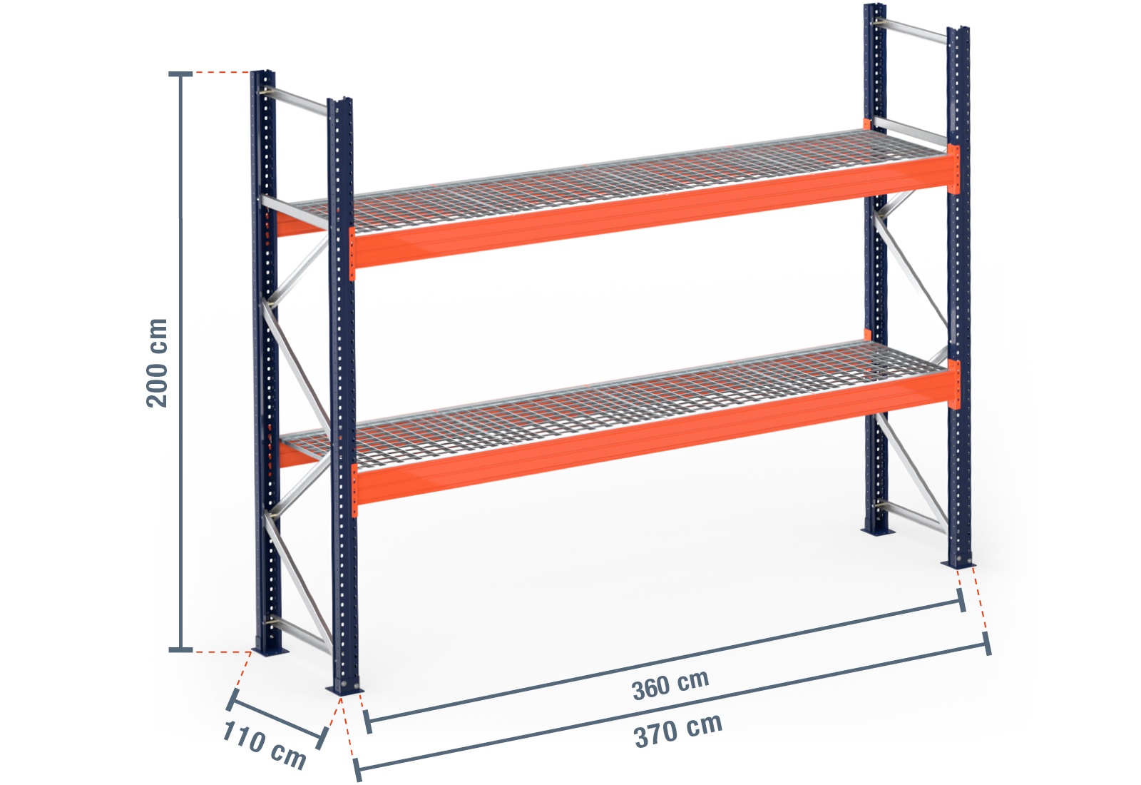 3,7 m pallet racking PR15000 / 110 cm deep / 2 m high / 2 levels / rack layer Galvanised mesh