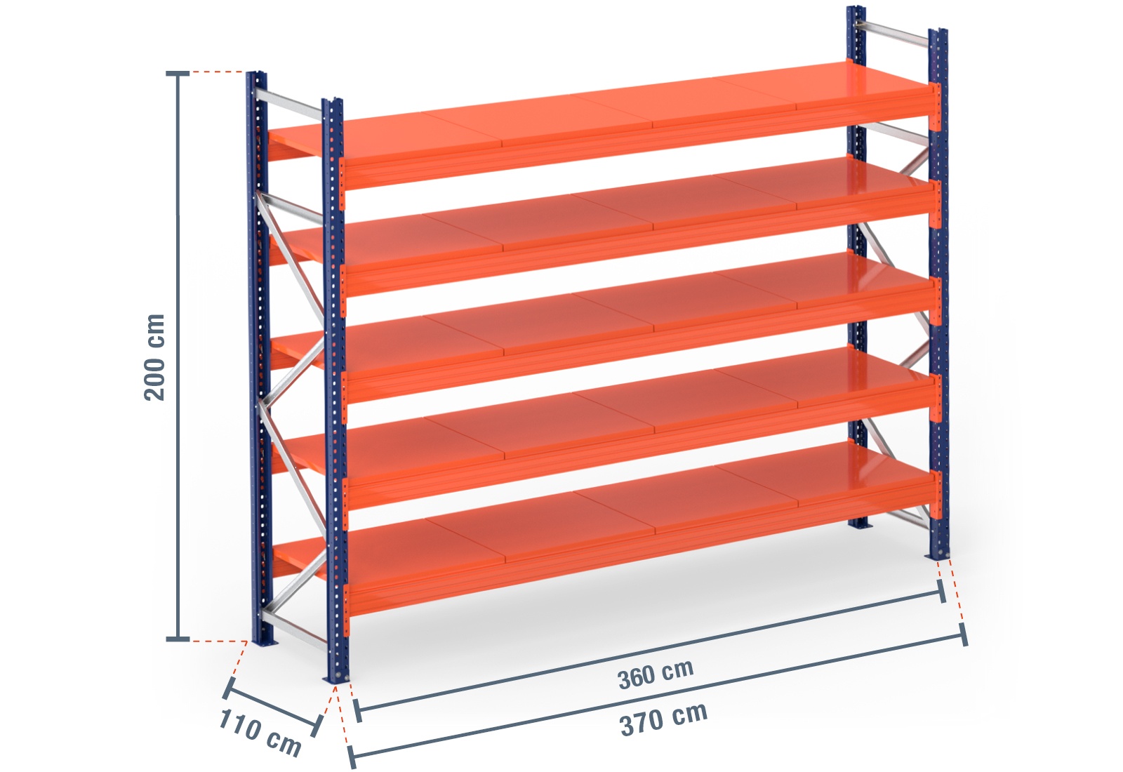 3,7 m pallet racking PR4500 / 110 cm deep / 2 m high / 5 levels / rack layer Steel