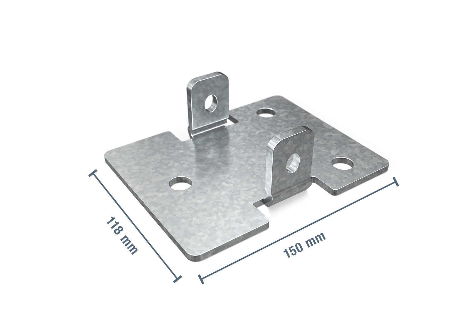 Steel S-355 JR (CRD - Coldrolled steel) 80 mm W x 70 mm D x 1.5 mm material thickness.