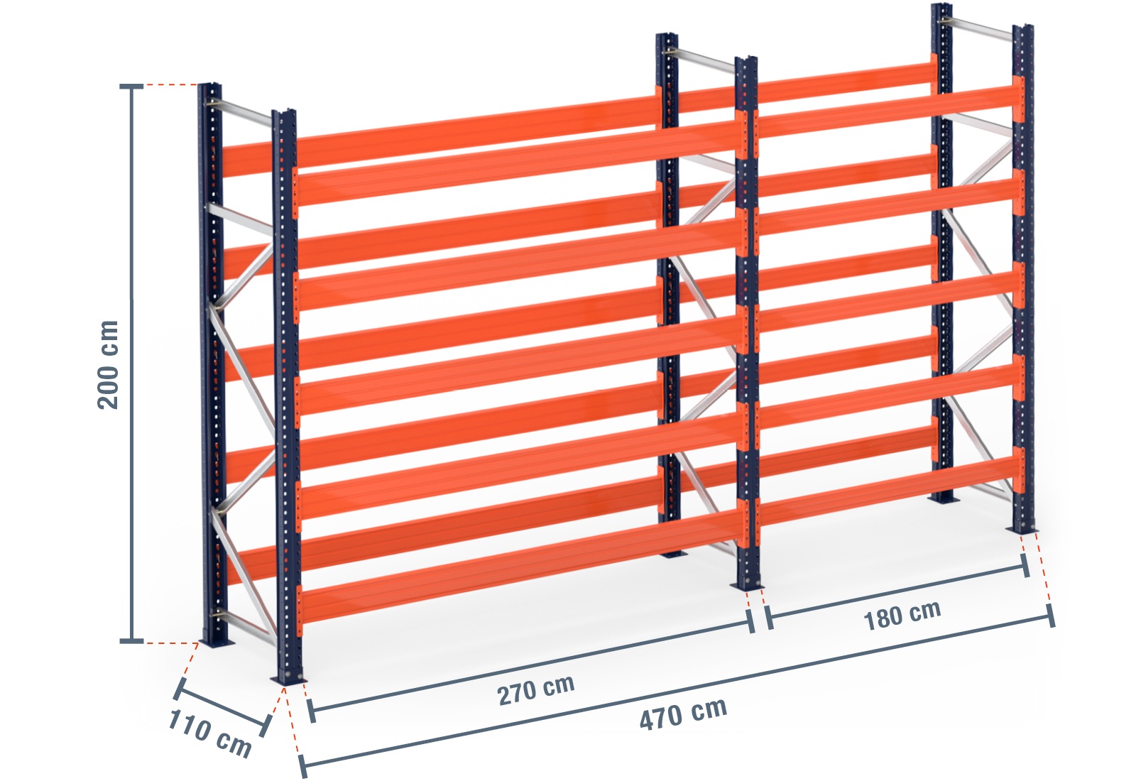 - Pallet rack PR4500 - Bay load (max.): 4500 kg / Shelf load (max.): 1500 kg