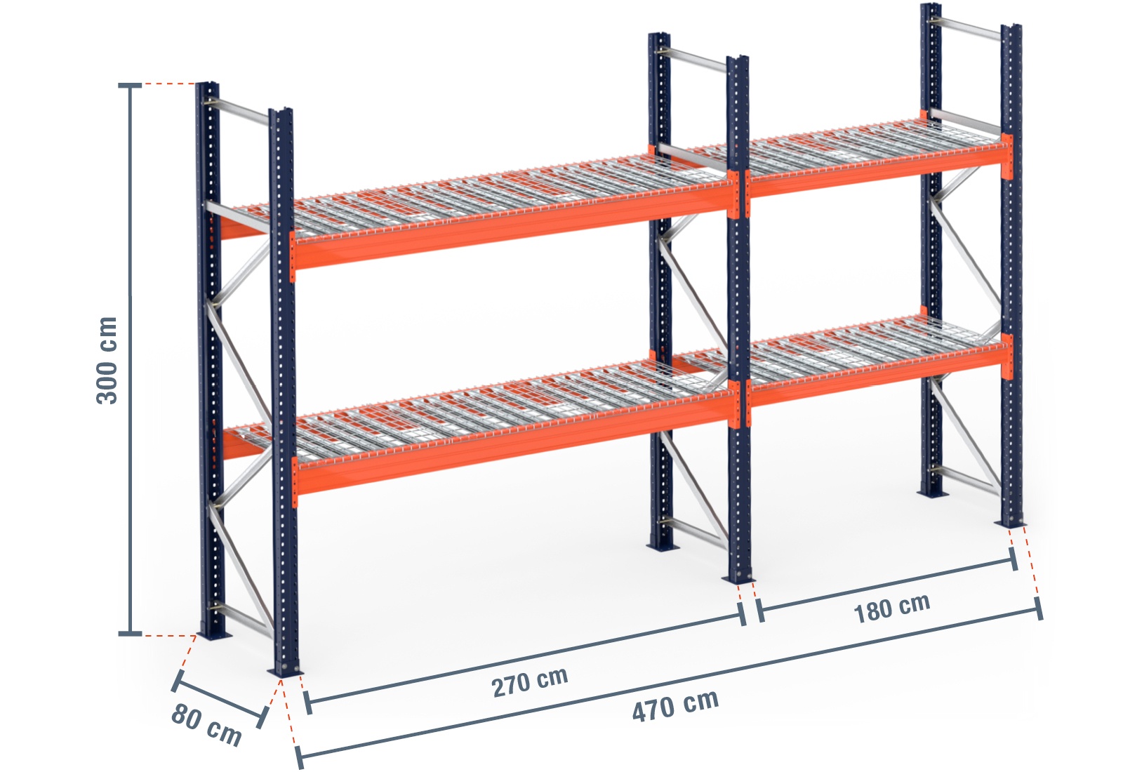 4,7 m pallet racking PR15000 / 80 cm deep / 3 m high / 2 levels / rack layer Wire mesh