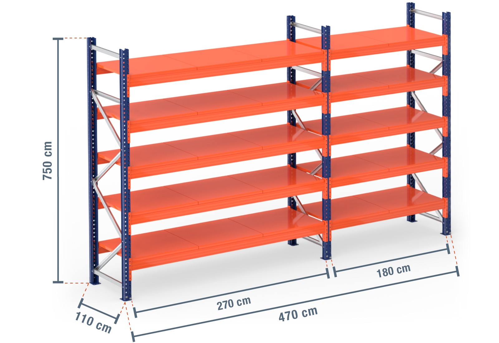 The steel shelf support is extremely durable and robust when compared with wooden boards or mesh shelves. These shelf supports have a long service life and are particularly suitable for the storage of liquids such as paint, oil or fuel. The steel shelf offers a maximum load capacity of 1.000 kg per module with an even weight distribution. It is also painted in the bright signal colour of orange. This ensures safety as the shelves can be easily seen from a distance. Its special design enables the steel shelf to be secured to the beams themselves, so it simply needs to be placed in position. When loading your pallet rack, please observe the maximum shelf and unit loads specified.