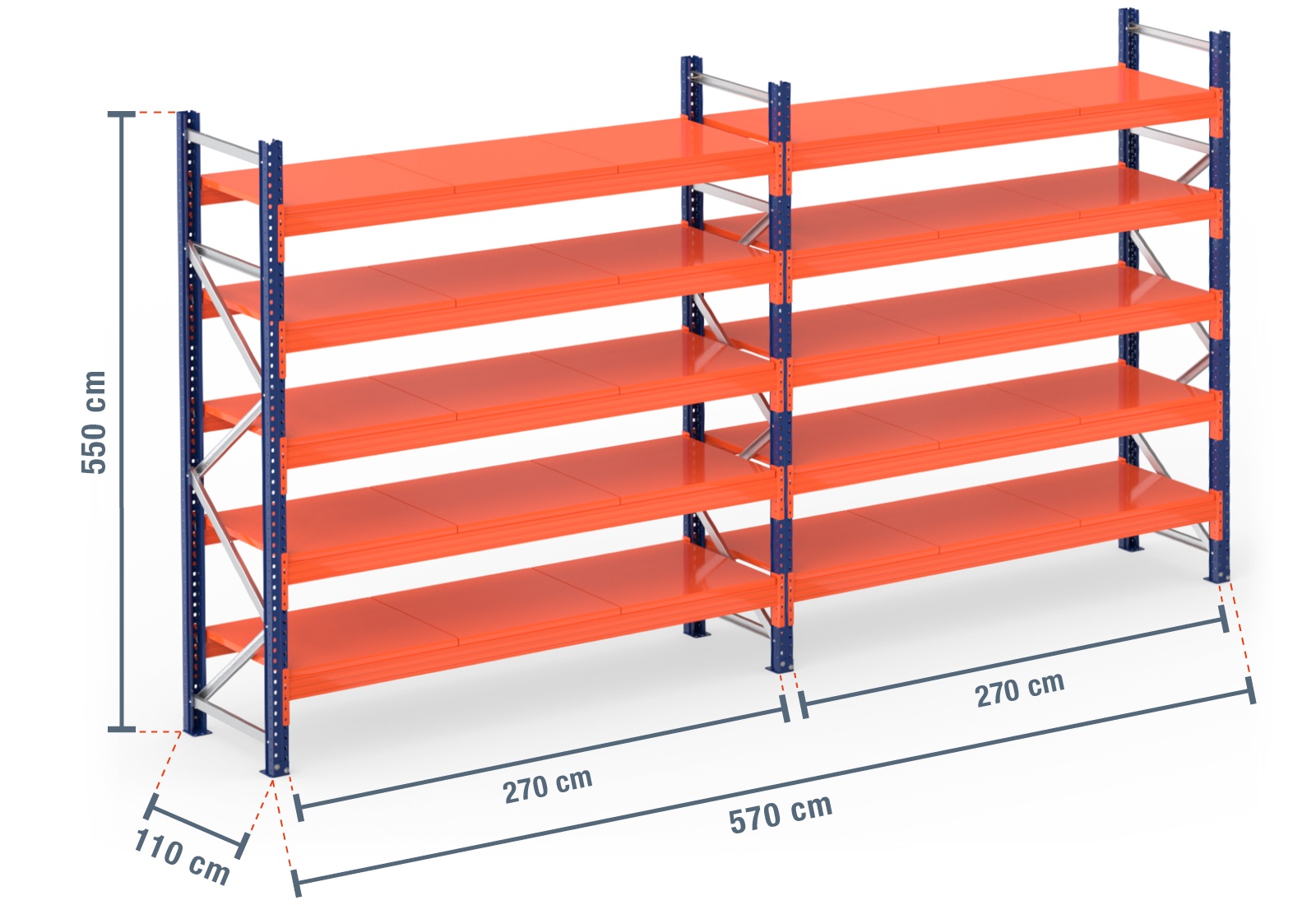5,7 m pallet racking PR4500 / 110 cm deep / 5,5 m high / 5 levels / rack layer Steel