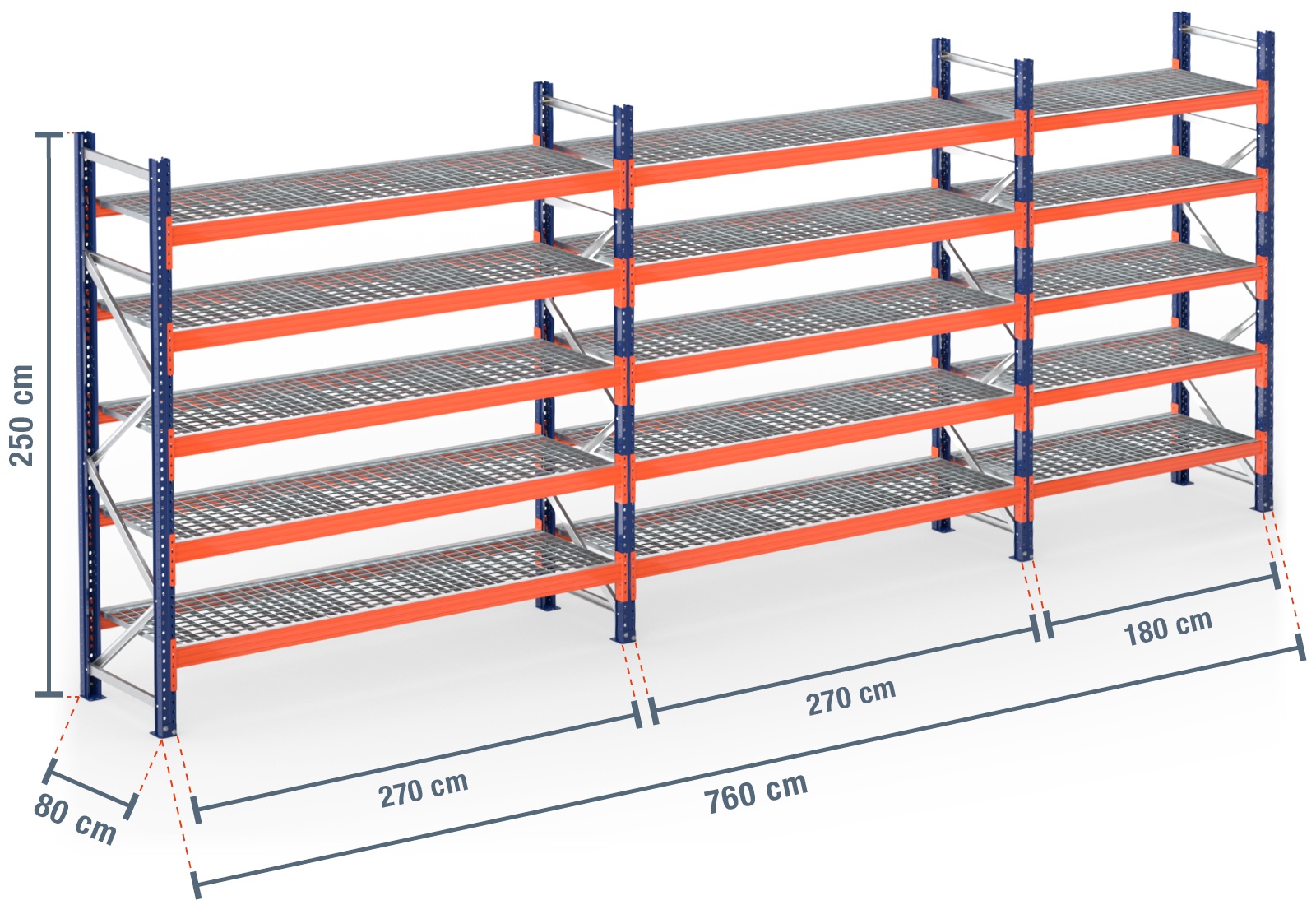 • 5 x mesh shelf PR4500 180 cm wide / 80 cm deep (comprising 10 modules)