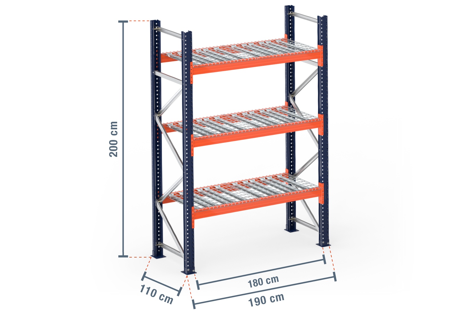1,9 m pallet racking PR15000 / 110 cm deep / 2 m high / 3 levels / rack layer Wire mesh