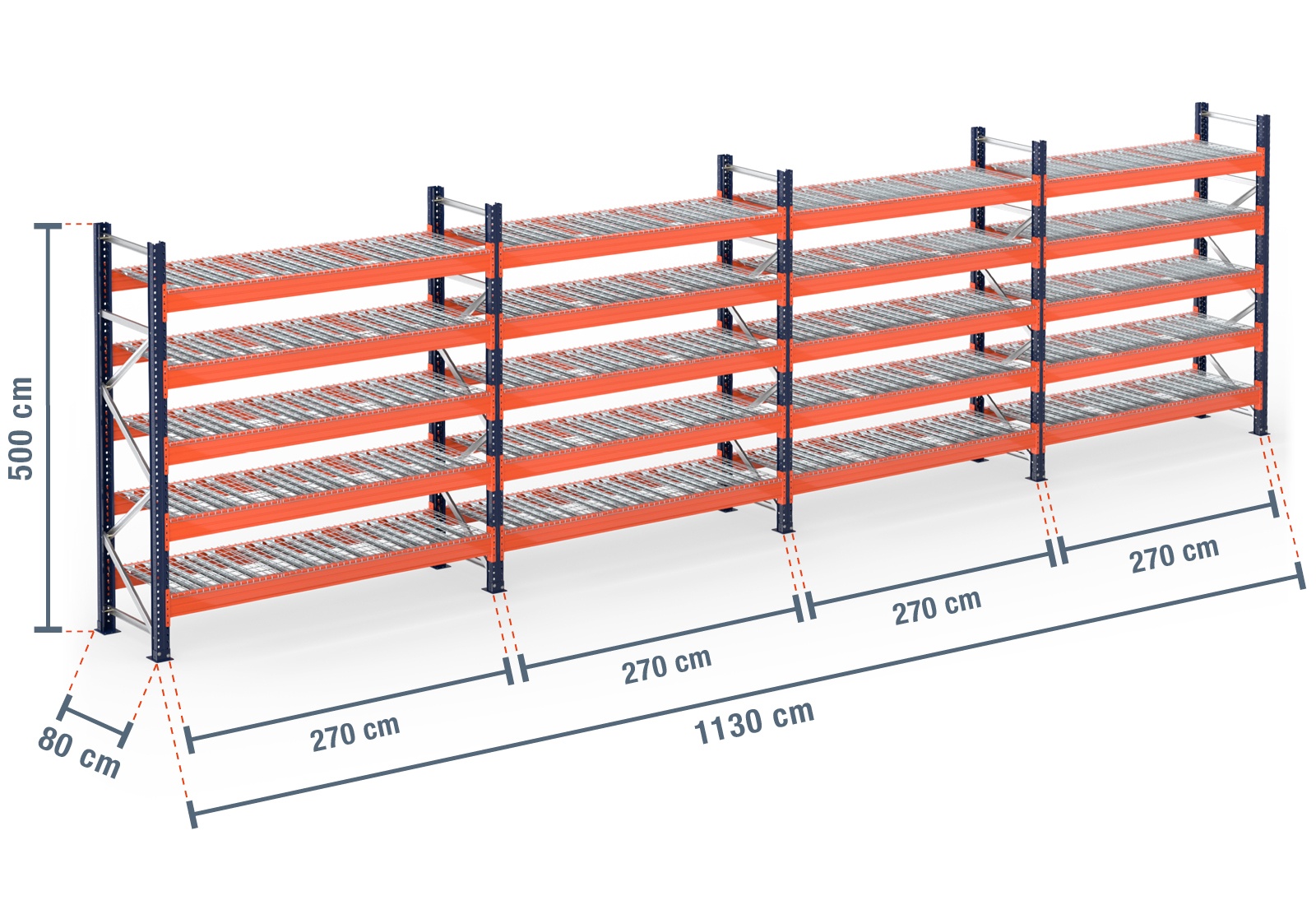 11,3 m pallet racking PR15000 / 80 cm deep / 5 m high / 5 levels / rack layer Wire mesh
