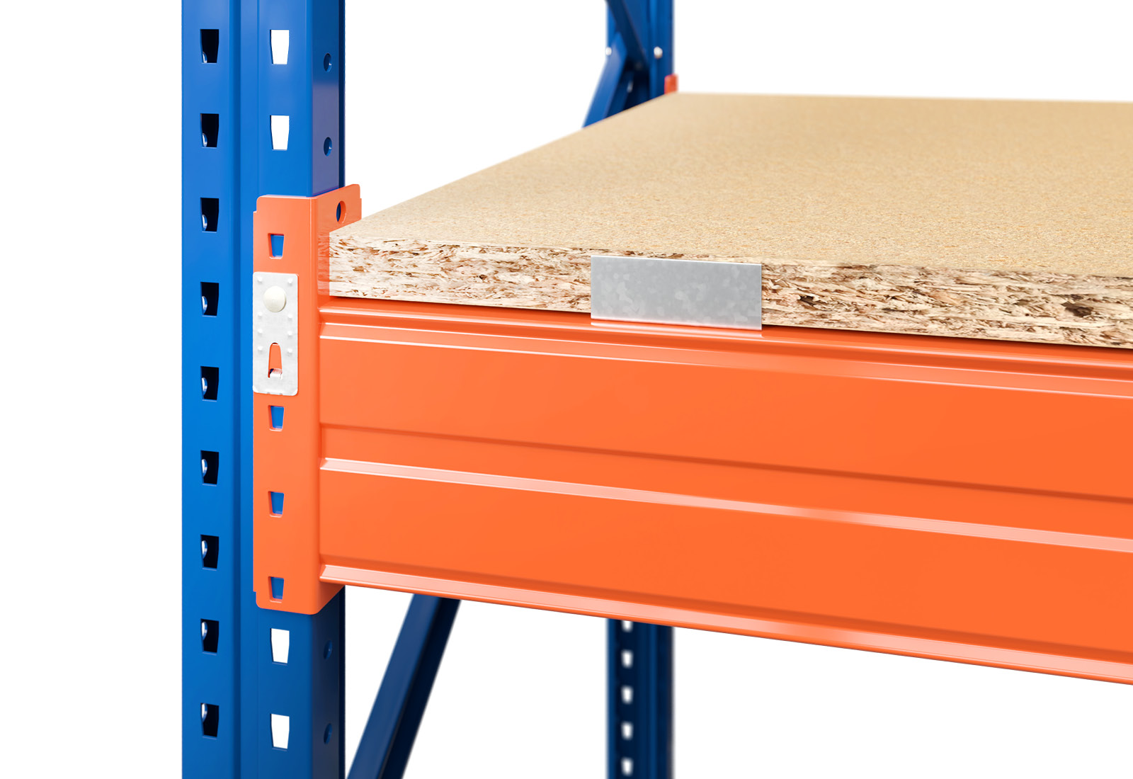 The practical wooden boards are made of 38 mm-thick chipboard panels, which are attached to the beams using four Z-plates. These robust shelf supports hold a total weight of 1.500 kg with an even load distribution; this load capacity can be increased with support bars. Wooden boards are therefore a low-cost alternative to more expensive steel boards and mesh shelves. When loading your pallet rack, please observe the maximum shelf and unit loads specified.
