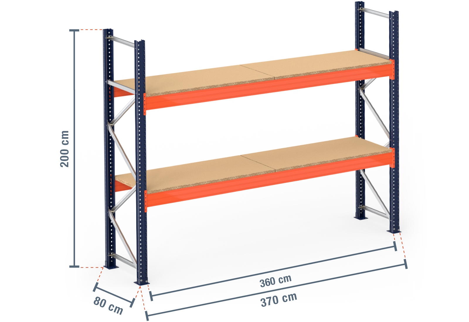 3,7 m pallet racking PR15000 / 80 cm deep / 2 m high / 2 levels / rack layer Wood