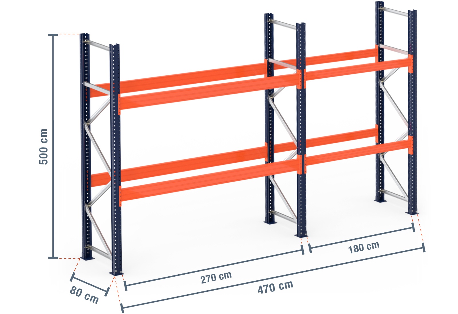 4,7 m pallet rack PR15000 / 80 cm deep / 5 m high / 2 levels for 15 euro pallets