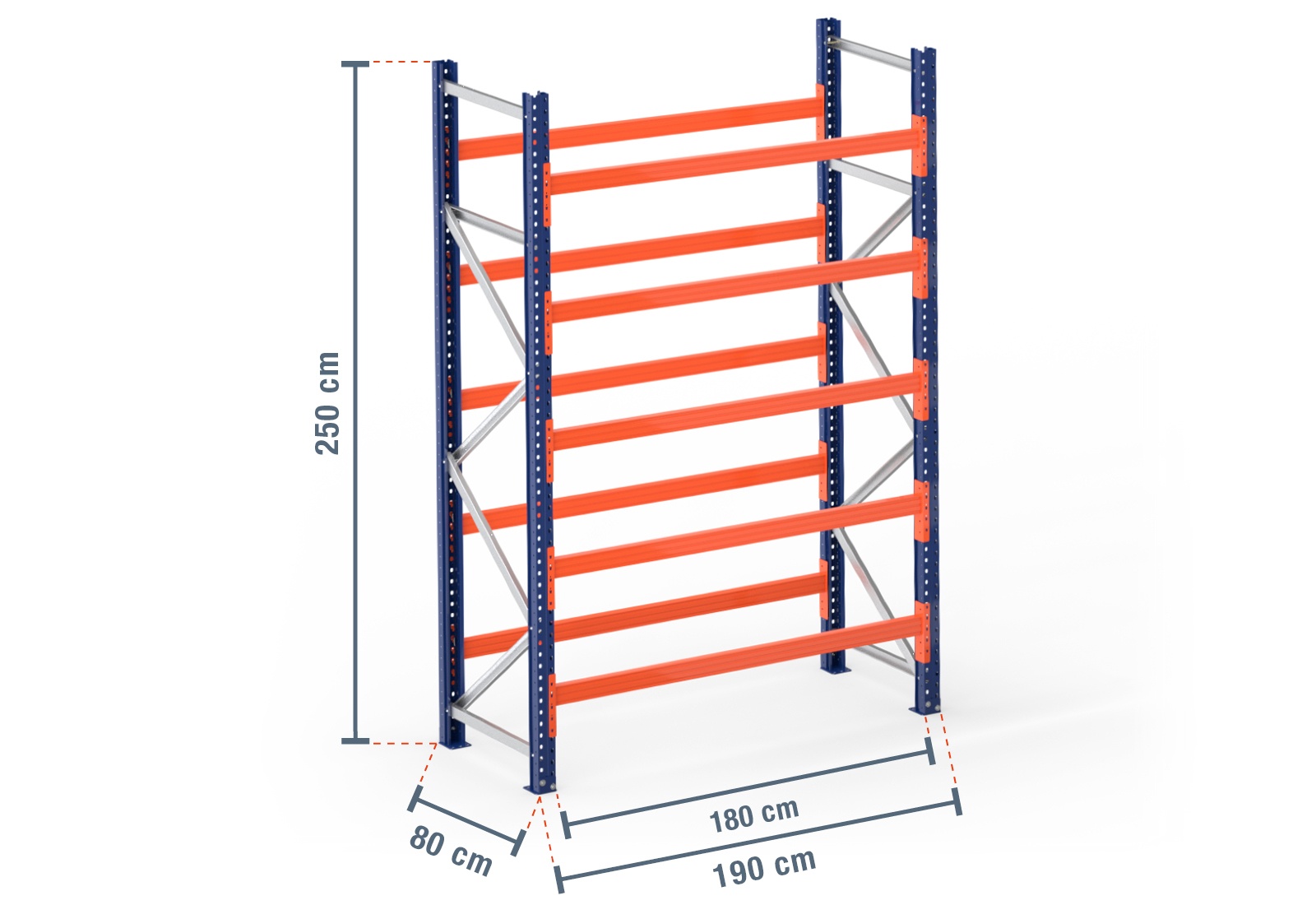 - Pallet rack PR4500 - Bay load (max.): 4500 kg / Shelf load (max.): 1500 kg