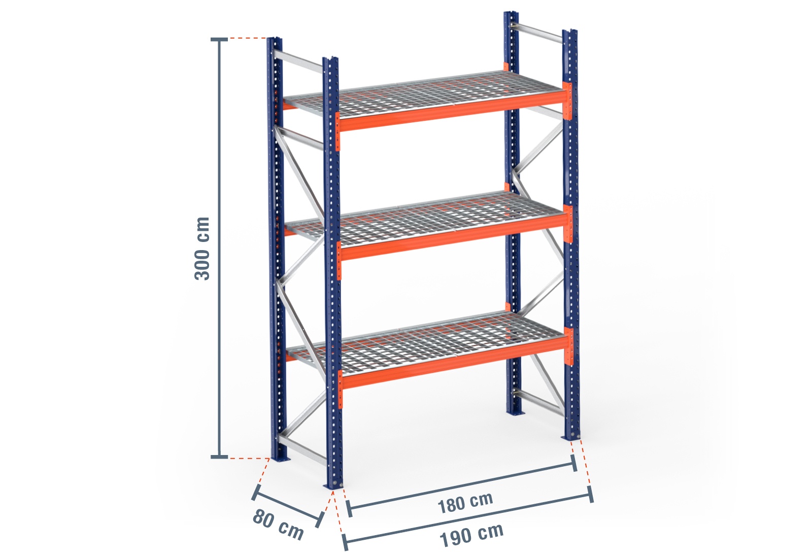 1,9 m pallet rack PR4500 / 80 cm deep / 3 m high / 3 levels / shelf Galvanised mesh
