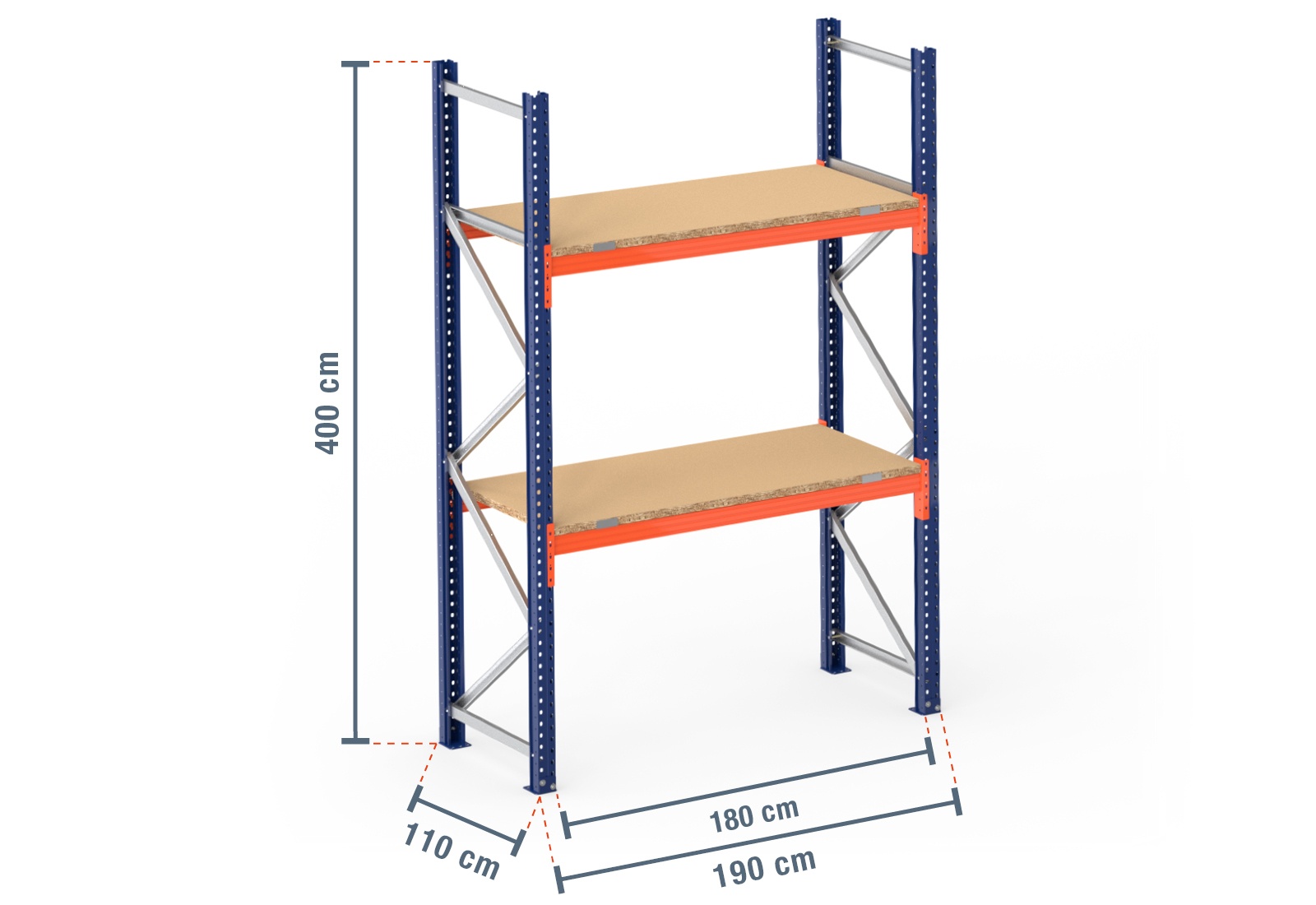 1,9 m pallet racking PR4500 / 110 cm deep / 4 m high / 2 levels / rack layer Wood