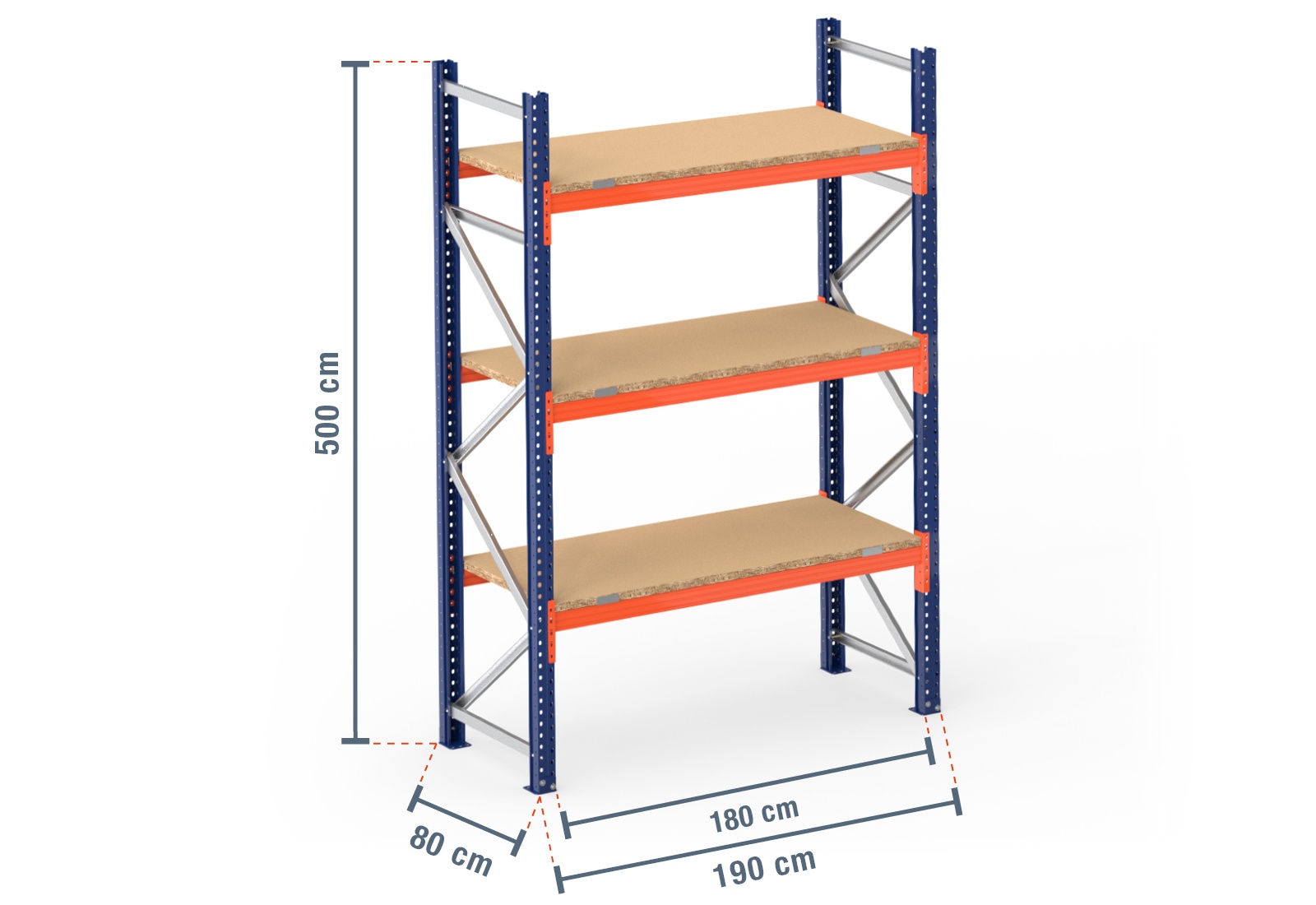 1,9 m pallet racking PR4500 / 80 cm deep / 5 m high / 3 levels / rack layer Wood