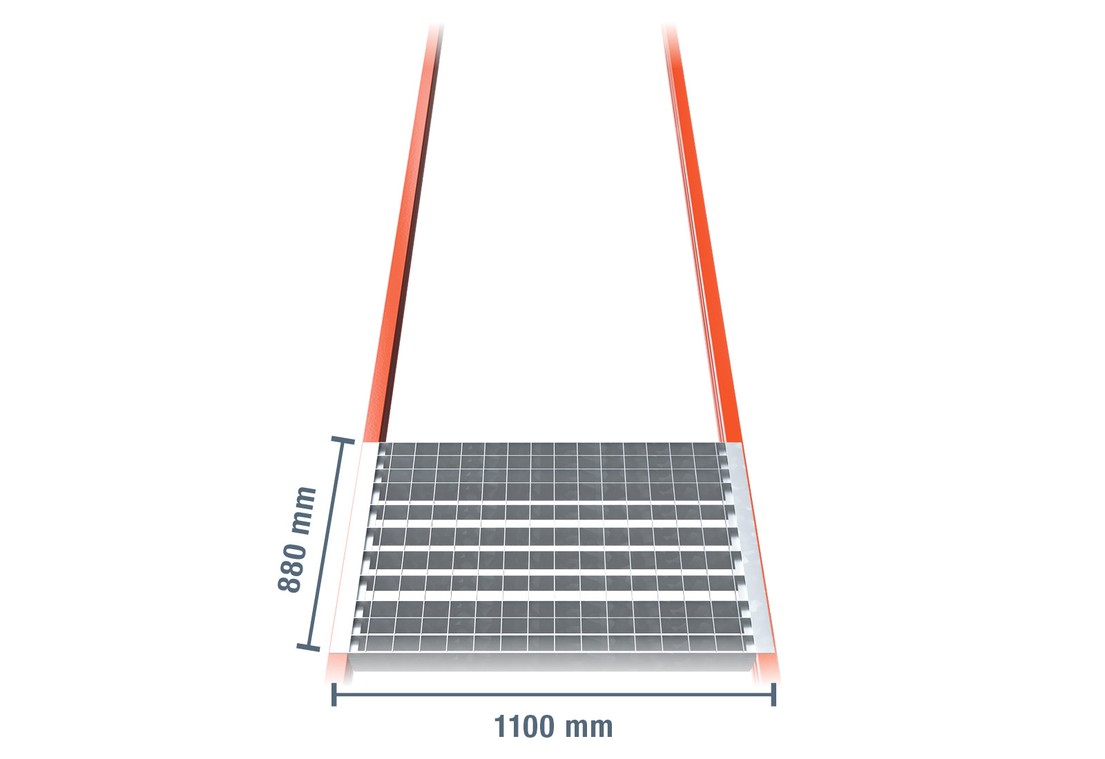 880 mm galvanised mesh shelf for pallet rack PR4500, PR9000, PR15000 / 1.100 mm deep / load 800 kg