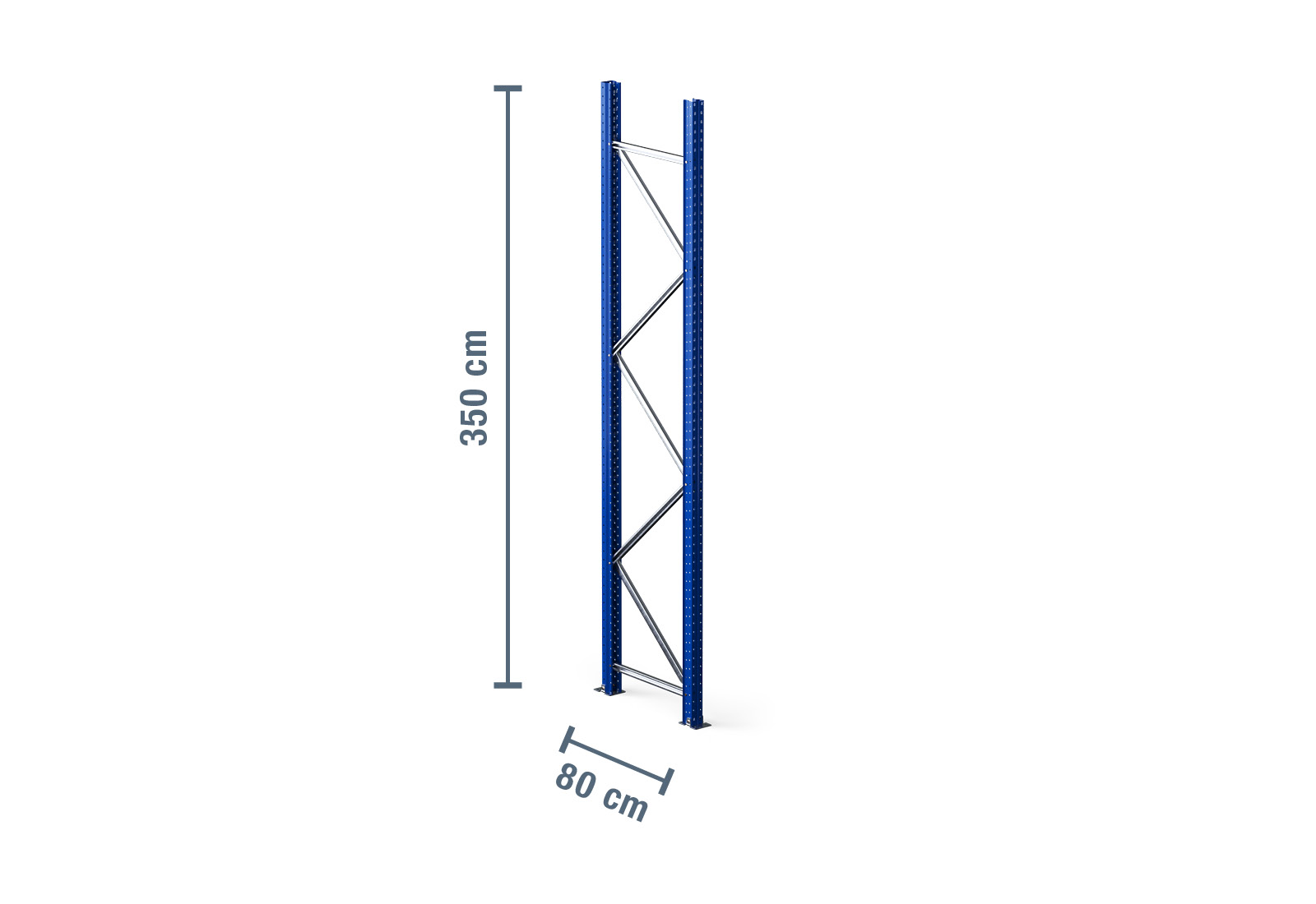 The signal colour of blue provides a striking visual touch and ensures safety in your warehouse. This upright for the pallet rack is secured to the floor with 4 bolt anchors (M12 x 100 mm).