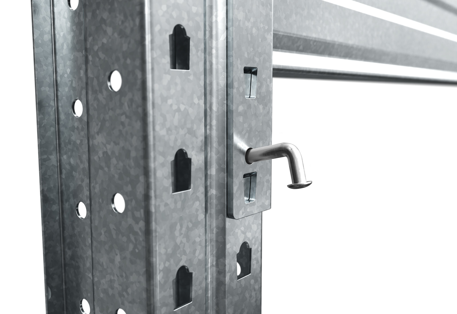 Safety & protection equipment and useful accessories for this type of rack, such as collision protection, galvanised mesh shelves or push-through protection, can be found in our webshop.