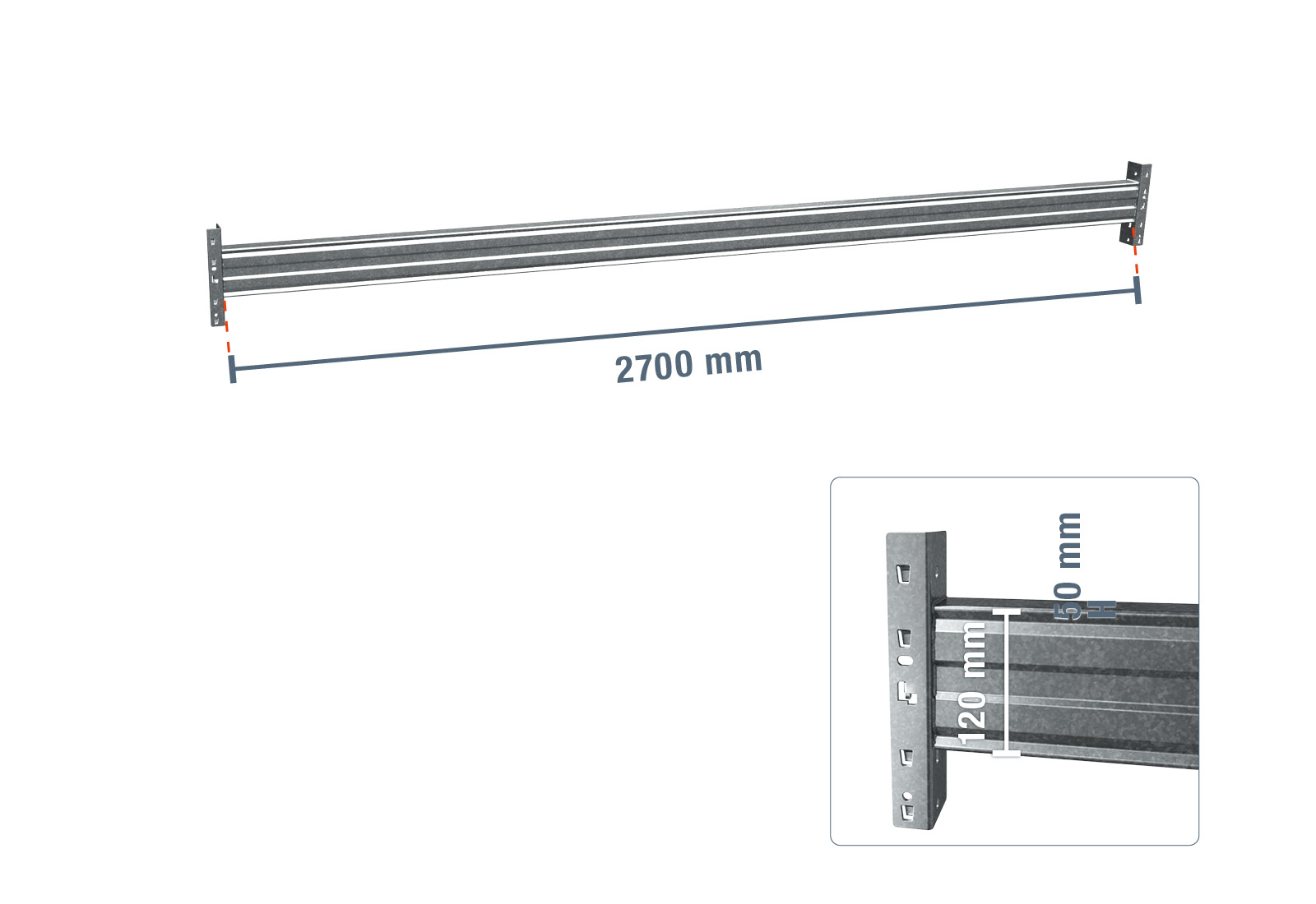 - 1 x 270 cm galvanised single beam for pallet rack PR9000F / compartment load capacity 3.000 kg
