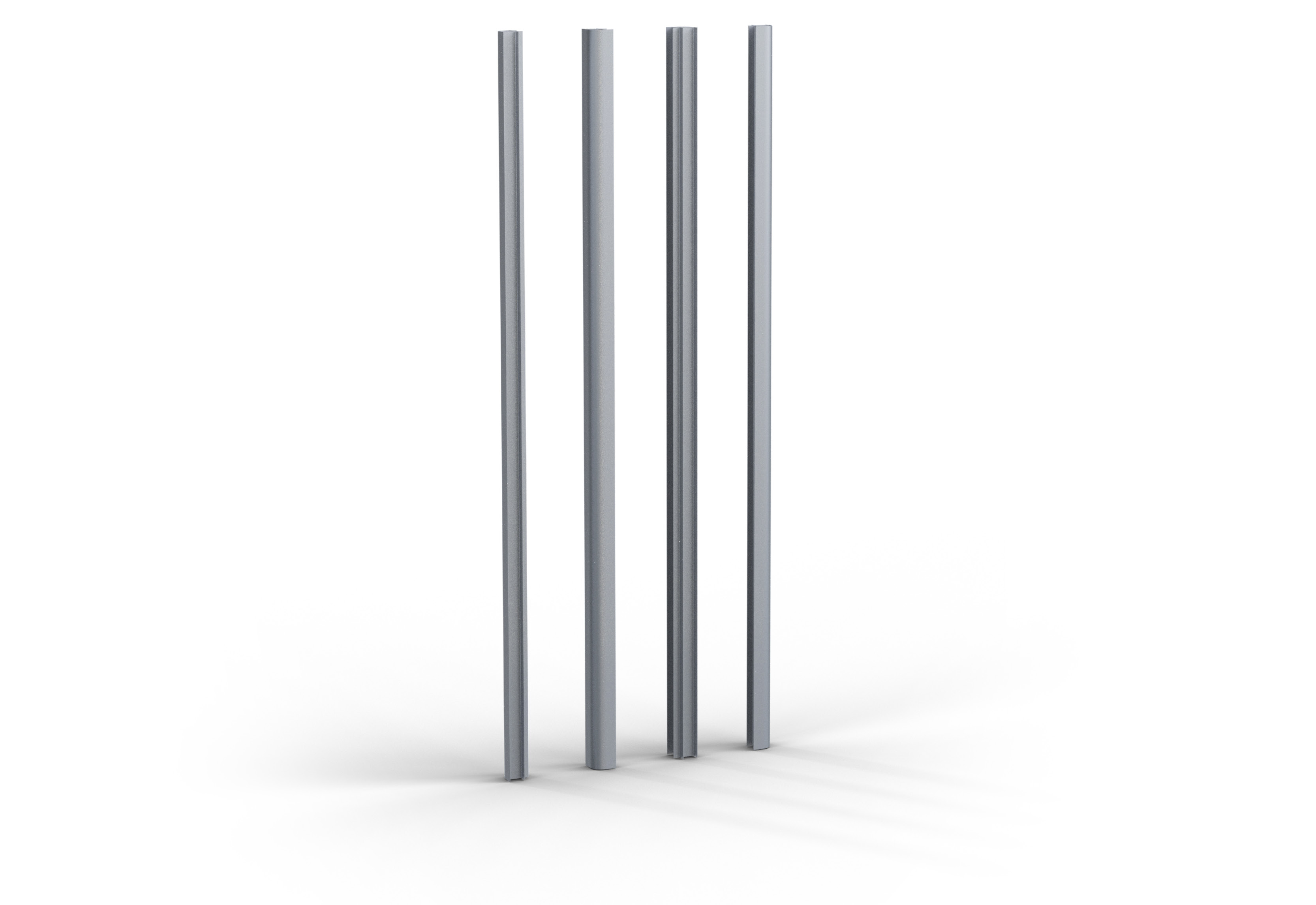 The 4 aluminium corner strips (height 2.56 m) connect the four walls of the prefab office and provide a rounded finish.