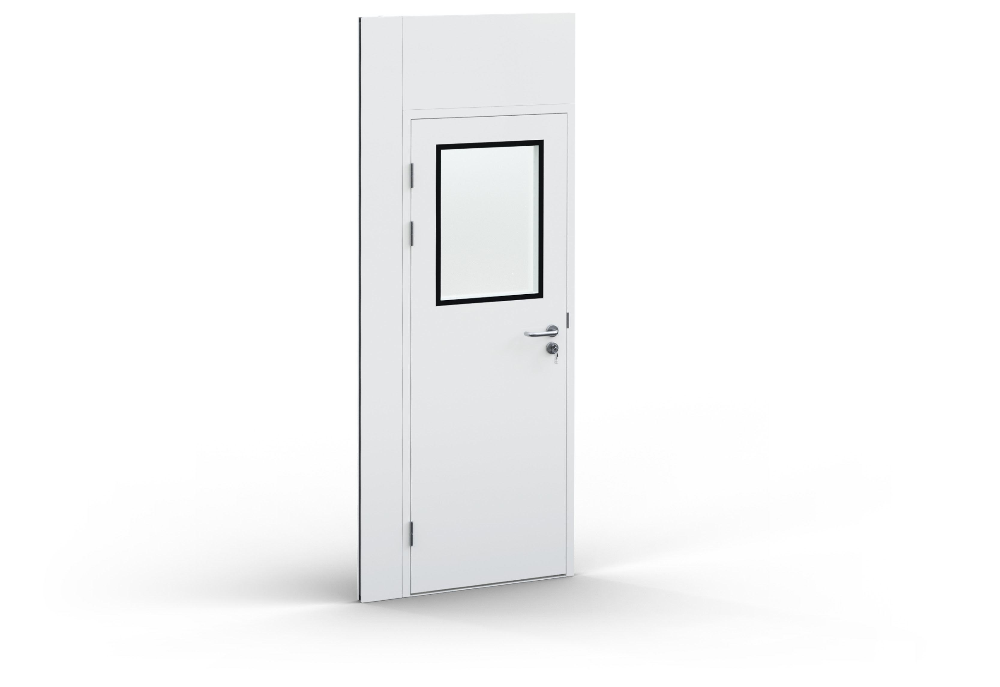 PREFAB door panels can be mounted in both directions. You determine the desired opening direction and side of the door handle when setting up the warehouse office.