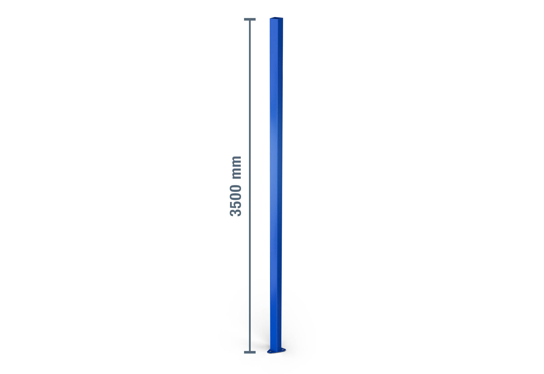 Corner shelf stand profile for the storage rack LR2000 made of cold-rolled steel with a height of 3,5 m. The field load (max. load between two storage rack stands) is 2.000 kg. The blue powder coating provides lasting protection against corrosion. The stand profile is firmly fixed to the floor using M8 x 55 mm bolt anchors, ensuring stability for the entire storage rack.