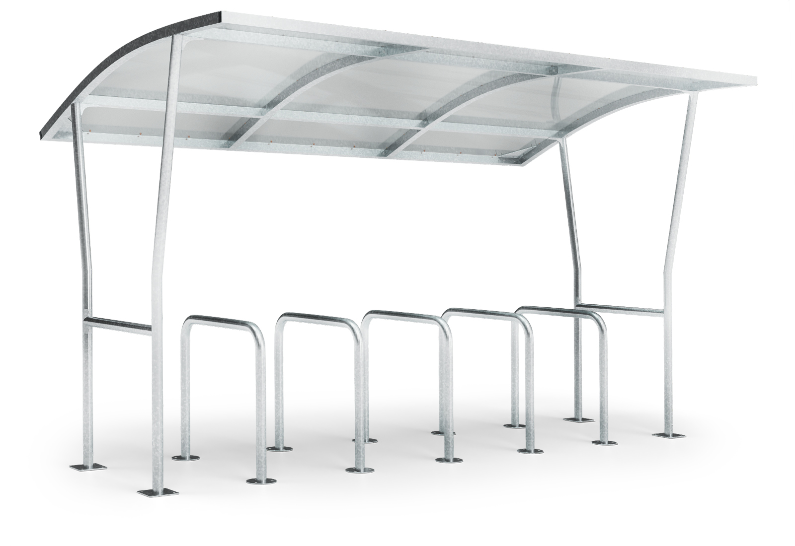 The bike shelter made of hot-dip galvanised steel with a weatherproof PC roof is ideal for this purpose. Thanks to the high-quality materials used, the bicycle shelter is particularly robust and durable. It offers you a secure storage, locking and parking option in all weathers. With its dimensions of 3.500 mm x 2.100 mm x 2.150 mm, the shelter offers enough space for up to 12 This makes it the ideal solution for companies that want to offer their employees and visitors a safe and practical place to store their bikes. The bikes can be locked to the 5 Fastening rods with locks to protect them from theft. Installation is extremely quick and easy. The bolt anchors included in the scope of delivery are used to secure them to the ground.
