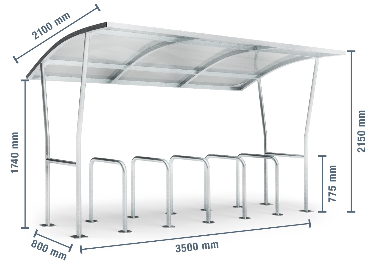 Bike shelter F350/5 for 12 bicycles (3.500 mm x 2.100 mm x 2.150 mm)