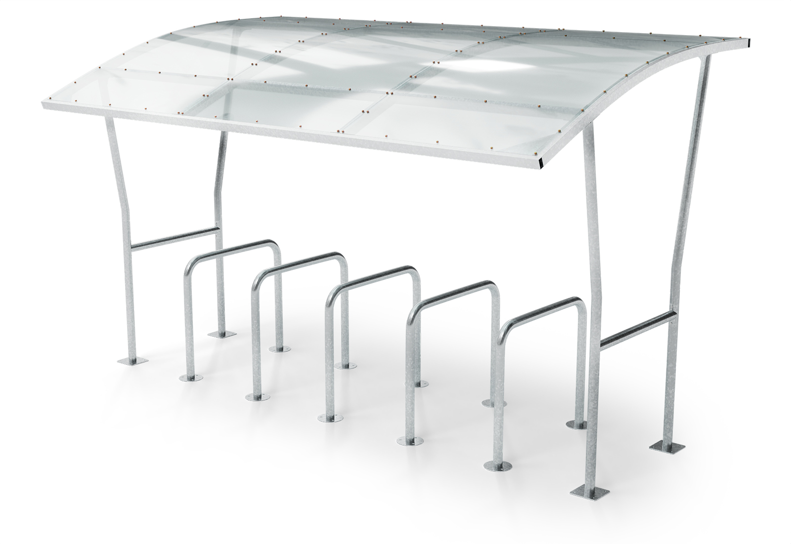 The bike shelter made of hot-dip galvanised steel with a weatherproof PC roof is ideal for this purpose. Thanks to the high-quality materials used, the bicycle shelter is particularly robust and durable. It offers you a secure storage, locking and parking option in all weathers. With its dimensions of 3.500 mm x 2.100 mm x 2.150 mm, the shelter offers enough space for up to 12 This makes it the ideal solution for companies that want to offer their employees and visitors a safe and practical place to store their bikes. The bikes can be locked to the 5 Fastening rods with locks to protect them from theft. Installation is extremely quick and easy. The bolt anchors included in the scope of delivery are used to secure them to the ground.