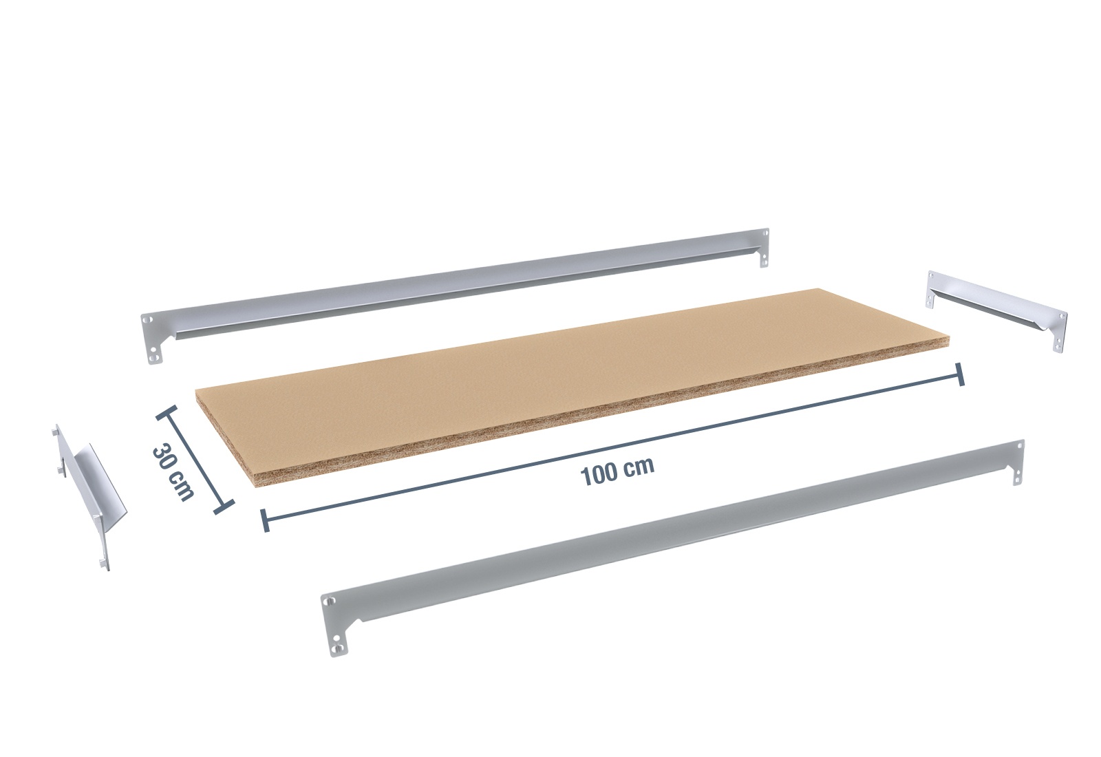 100 cm wooden board for shelving rack FB200 / 30 cm deep incl. mounting struts
