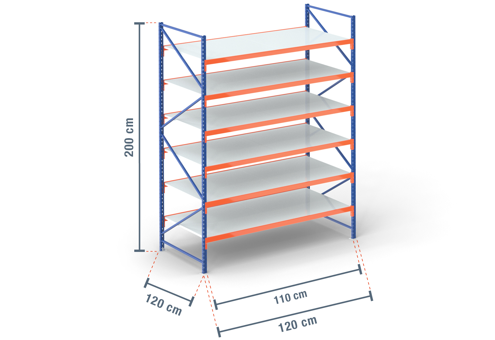 We offer you our storage rack in the depths 40 cm, 50 cm, 60 cm, 80 cm, 100 cm and in 120 cm.
