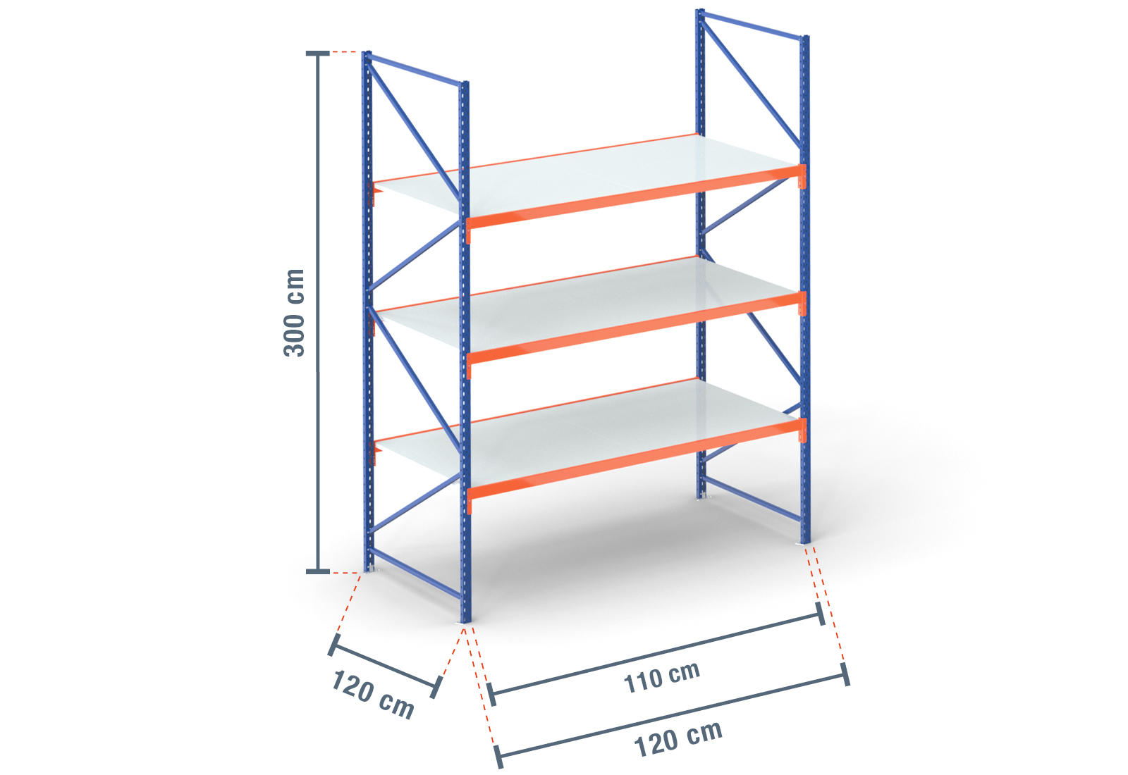 We offer you our storage rack in the depths 40 cm, 50 cm, 60 cm, 80 cm, 100 cm and in 120 cm.