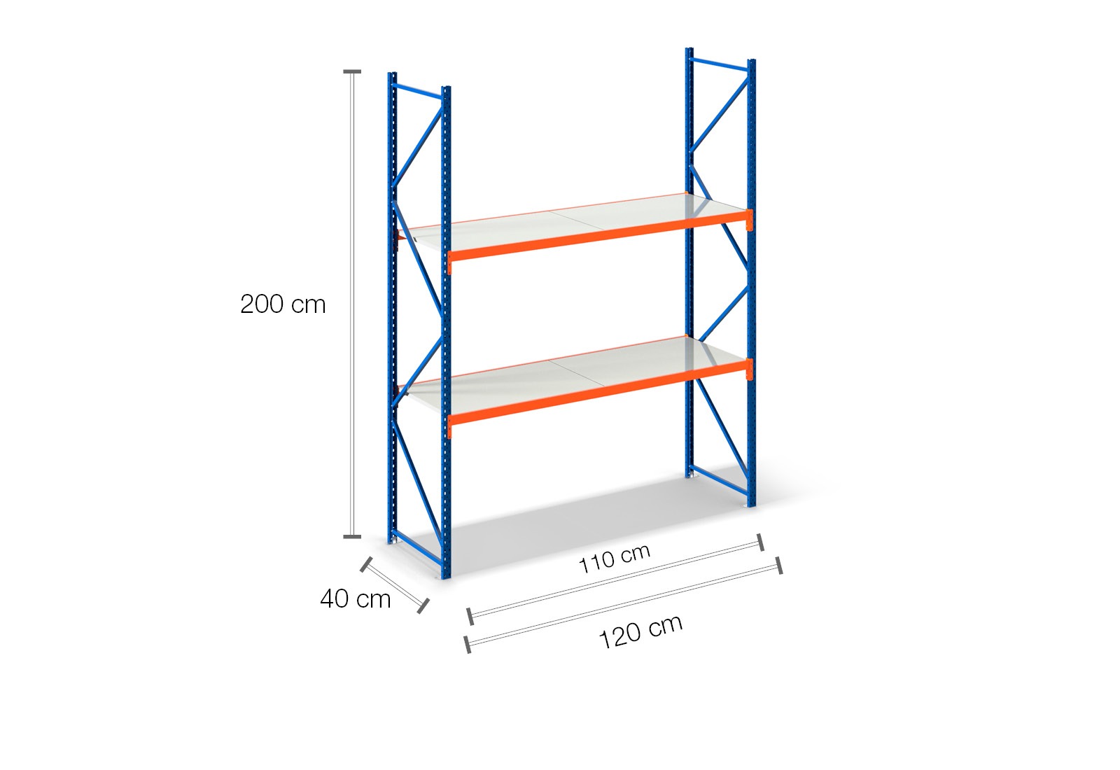 - 2 x upright 2 m high / 40 cm deep, unit load capacity: 2.000 kg
