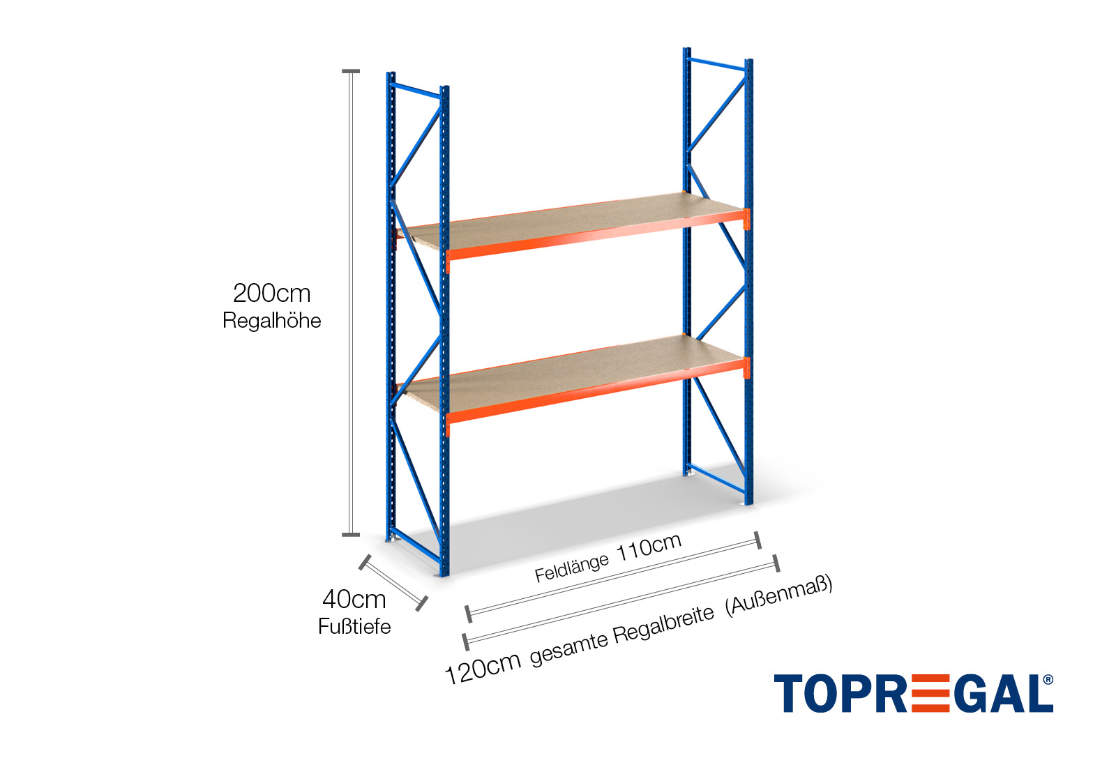 All data refer to evenly distributed loads. When loaded, the shelf load and field load must not be exceeded. In principle, the current guidelines on safety and health at work (german DGUV Rule 208-061) apply during use. TOPREGAL accepts no liability for accidents/damage caused by improper use. Our expert advisory team will be pleased to answer any questions you may have. Dimensions given are approximate and may deviate by a few centimetres. Contact us if you need the exact dimensions for your desired product.