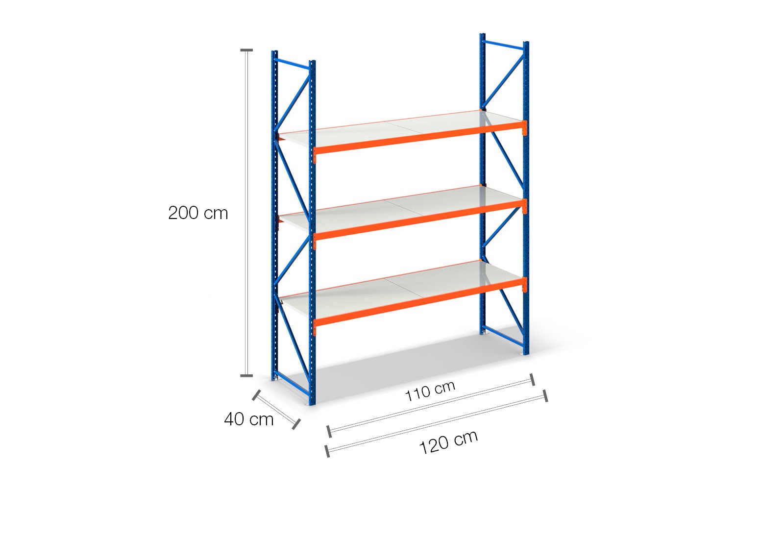 - 2 x upright 2 m high / 40 cm deep, unit load capacity: 2.000 kg