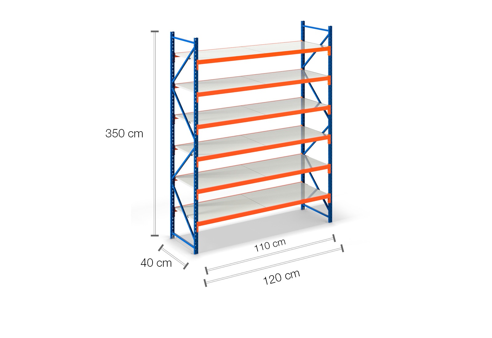 1,2 m storage rack LR2000 / 40 cm deep / 3,5 m high / 6 levels / rack layer Steel