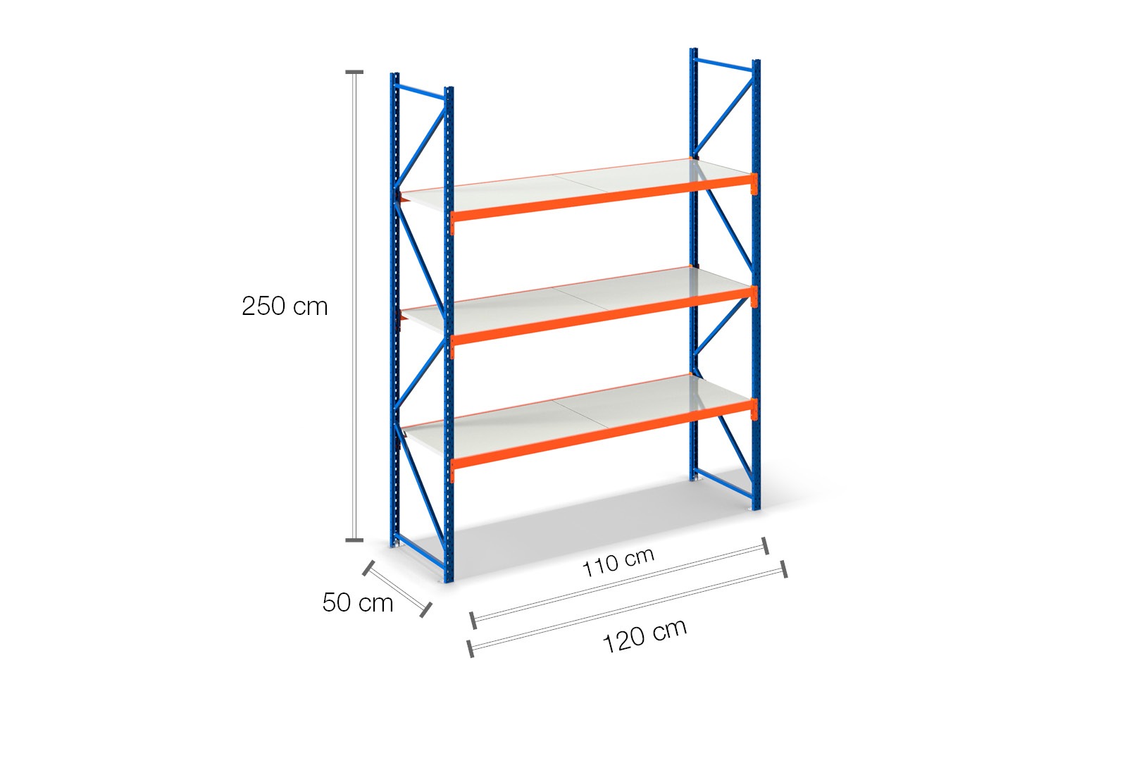 We offer you our storage rack in the depths 40 cm, 50 cm, 60 cm, 80 cm, 100 cm and in 120 cm.
