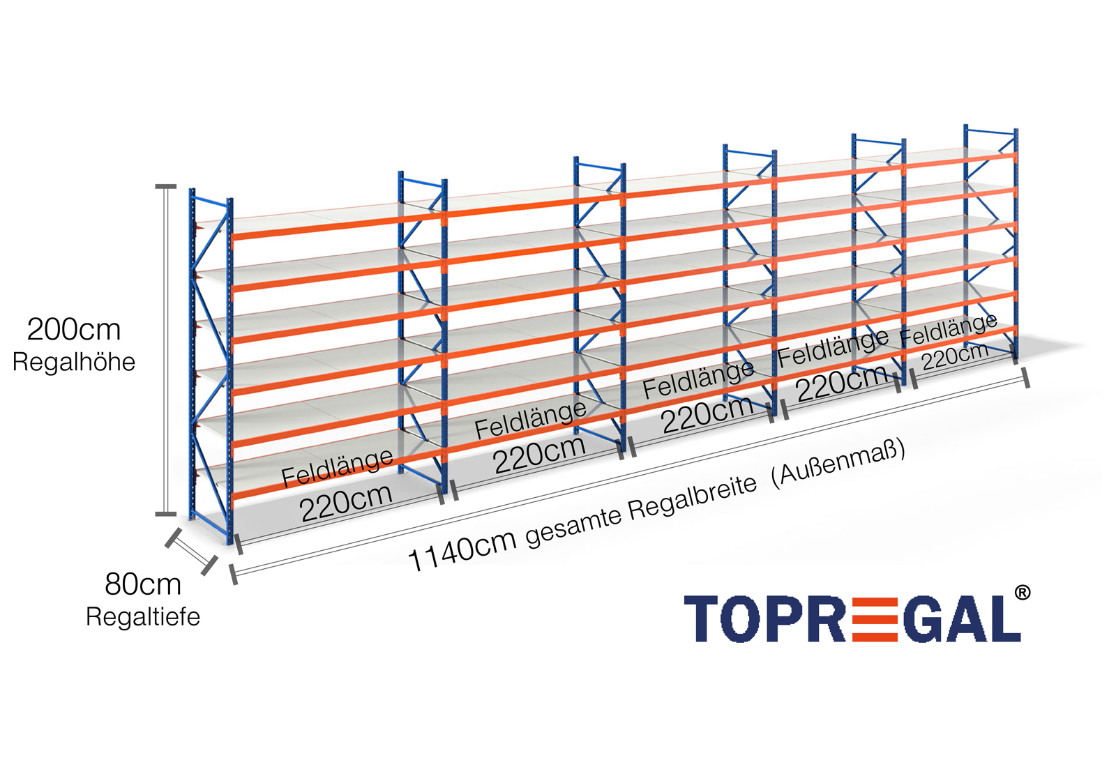 All data refer to evenly distributed loads. When loaded, the shelf load and field load must not be exceeded. In principle, the current guidelines on safety and health at work (german DGUV Rule 208-061) apply during use. TOPREGAL accepts no liability for accidents/damage caused by improper use. Our expert advisory team will be pleased to answer any questions you may have. Dimensions given are approximate and may deviate by a few centimetres. Contact us if you need the exact dimensions for your desired product.