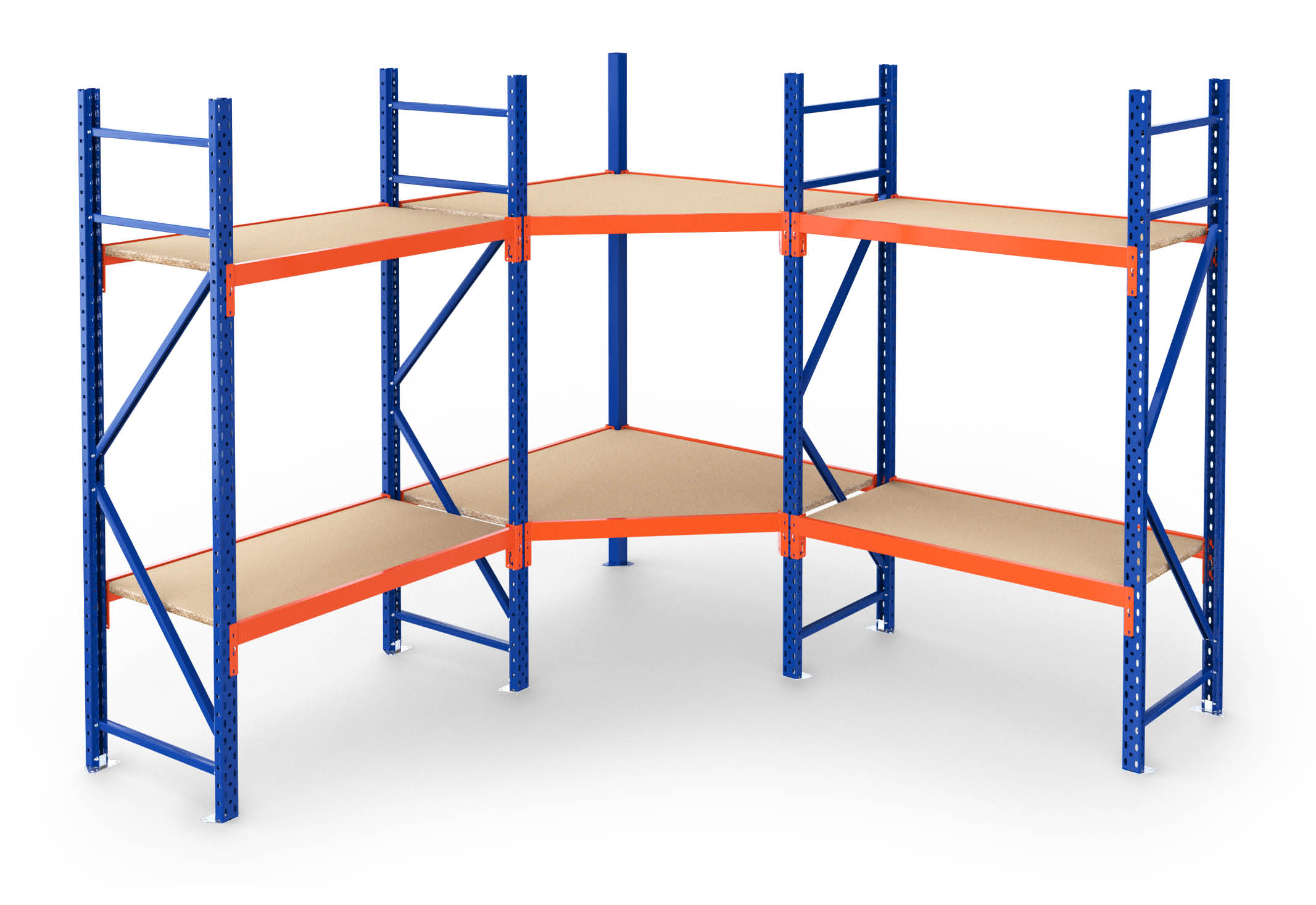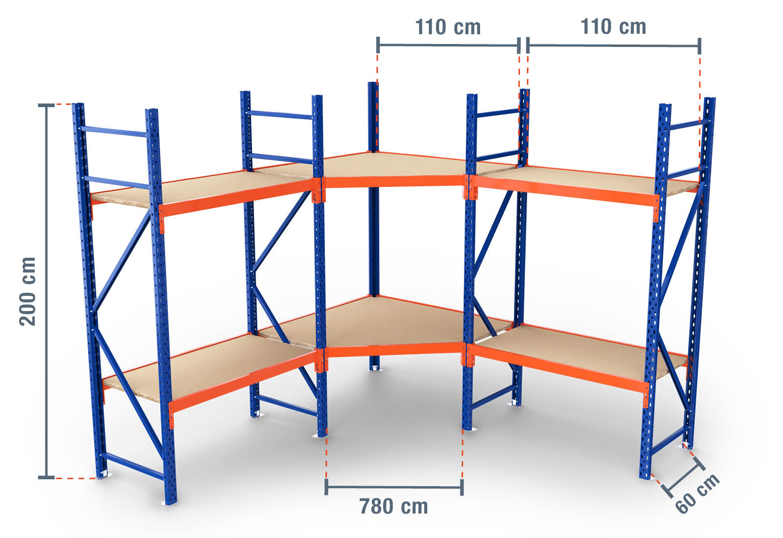 2.300 mm x 2.300 mm corner rack / storage rack LR2000 / 60 cm deep / 2 m high / 2 levels / rack layer Wood