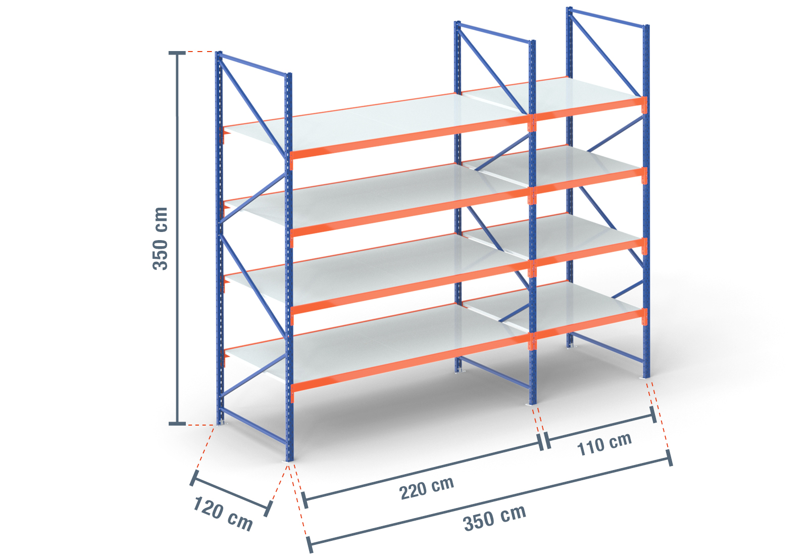 3,5 m storage rack LR2000 / 120 cm deep / 3,5 m high / 4 levels / rack layer Steel