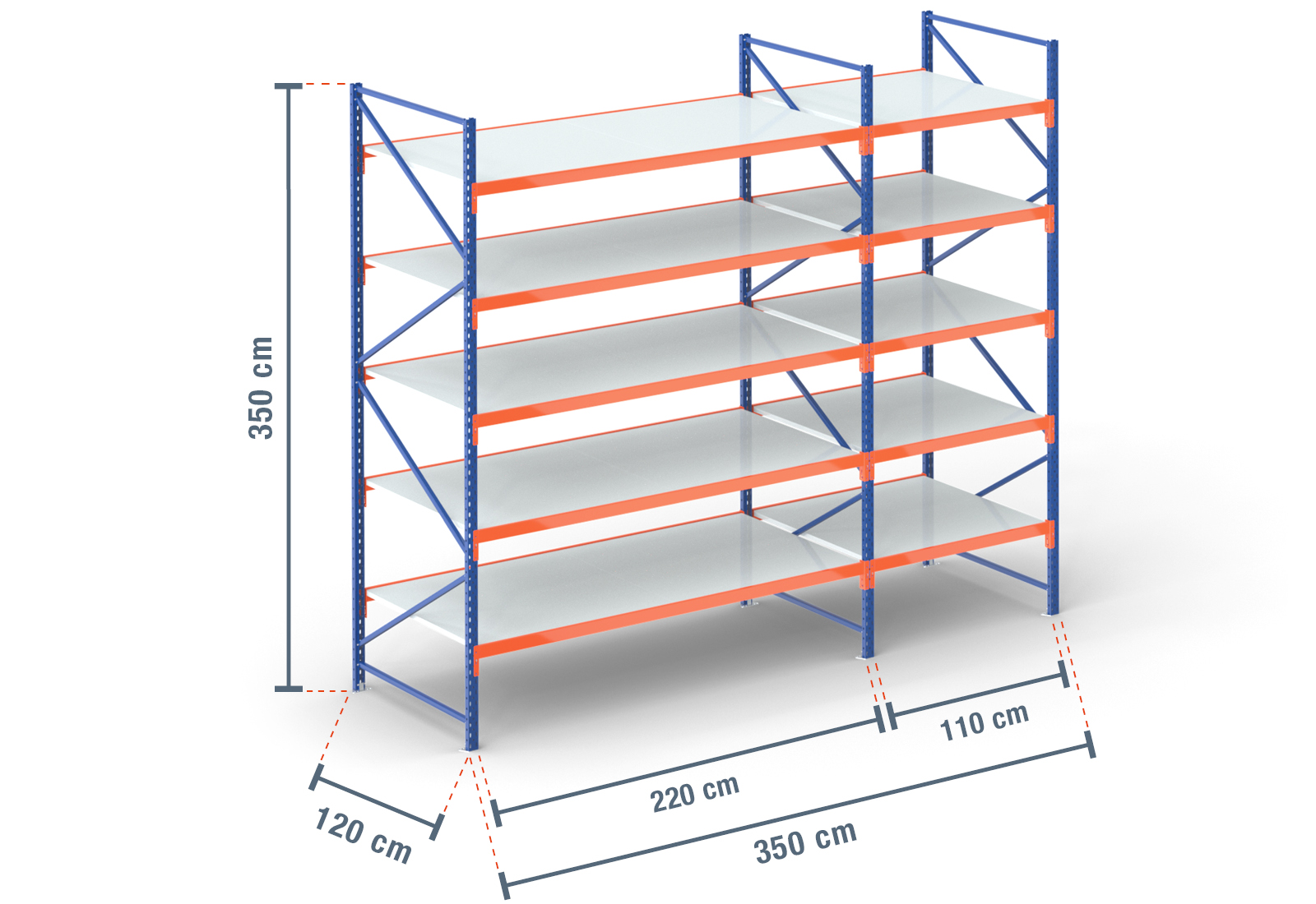 3,5 m storage rack LR2000 / 120 cm deep / 3,5 m high / 5 levels / rack layer Steel